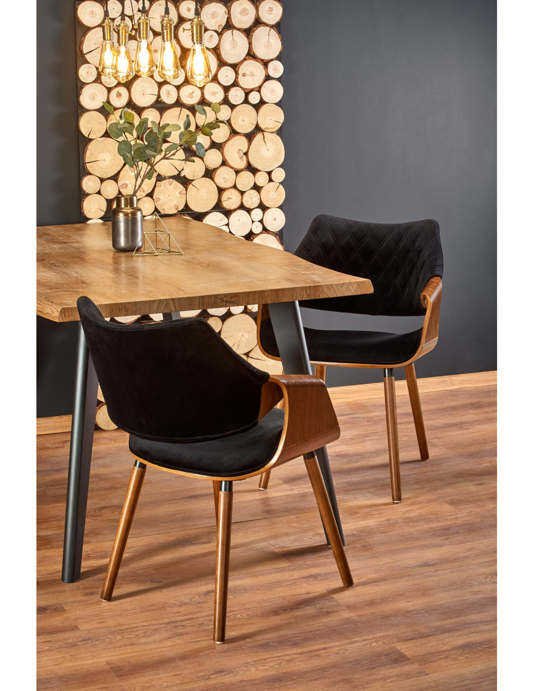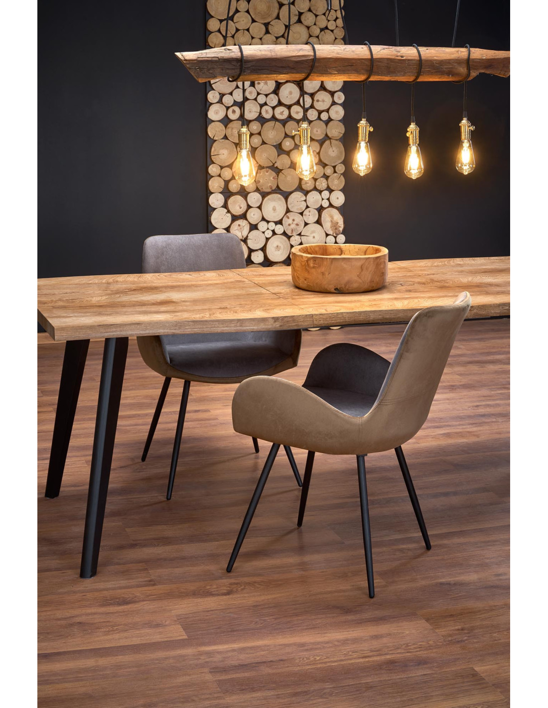 Stół DICKSON występuje w kolorze naturalnego dębu z czarnymi nogami, co czyni go niezwykle uniwersalnym meblem.
