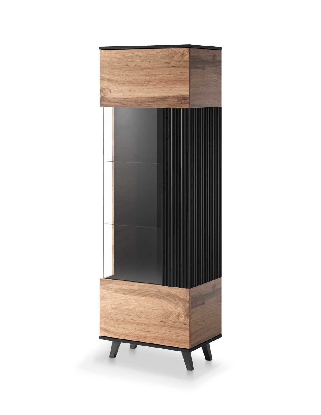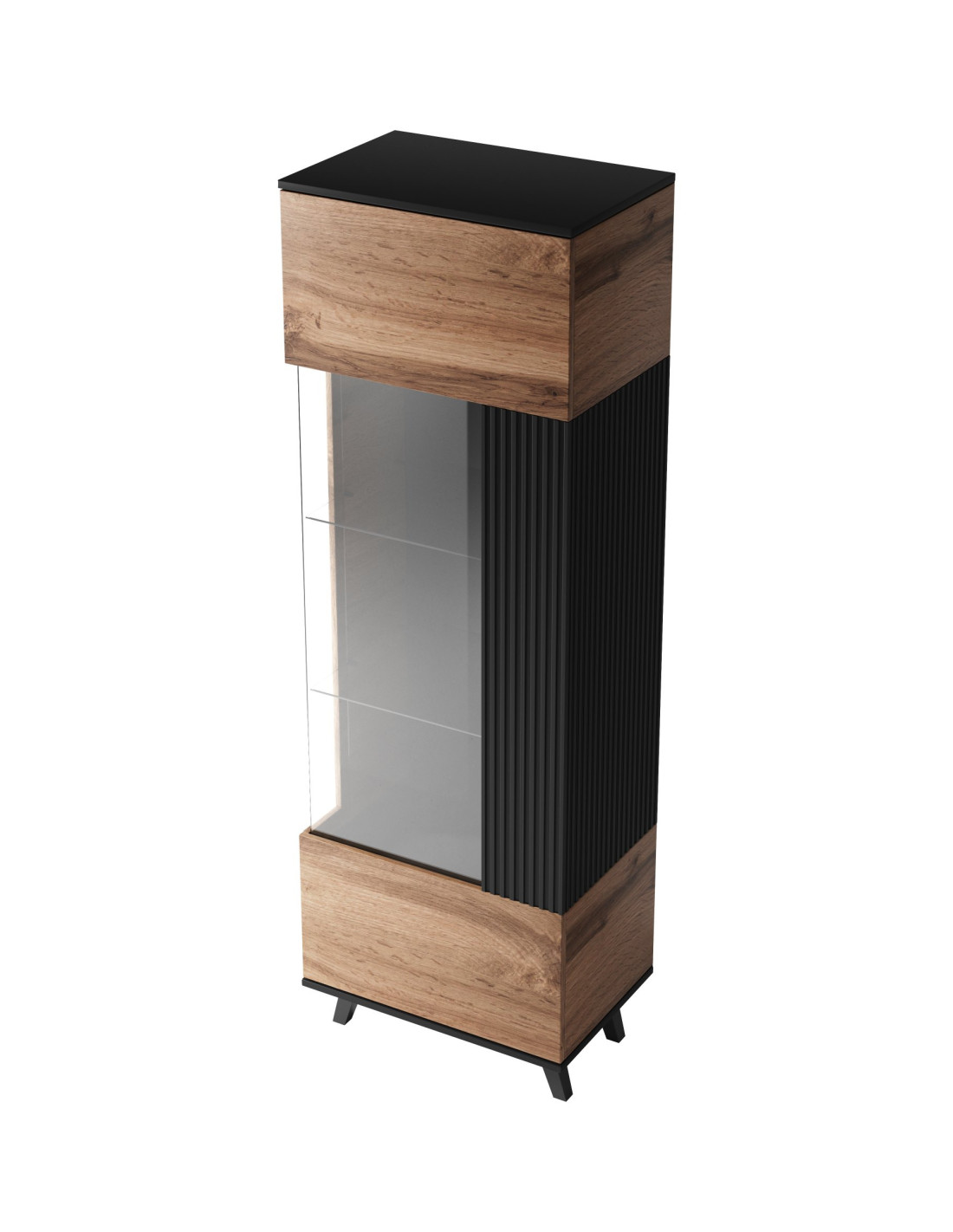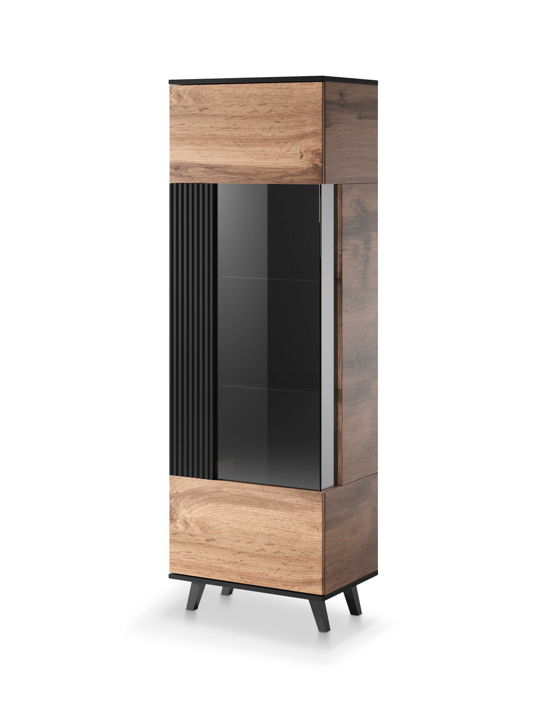 RANDOM Witryna Dąb Wotan/Czarny 60x182cm - Stylowe Przechowywanie z Wizją