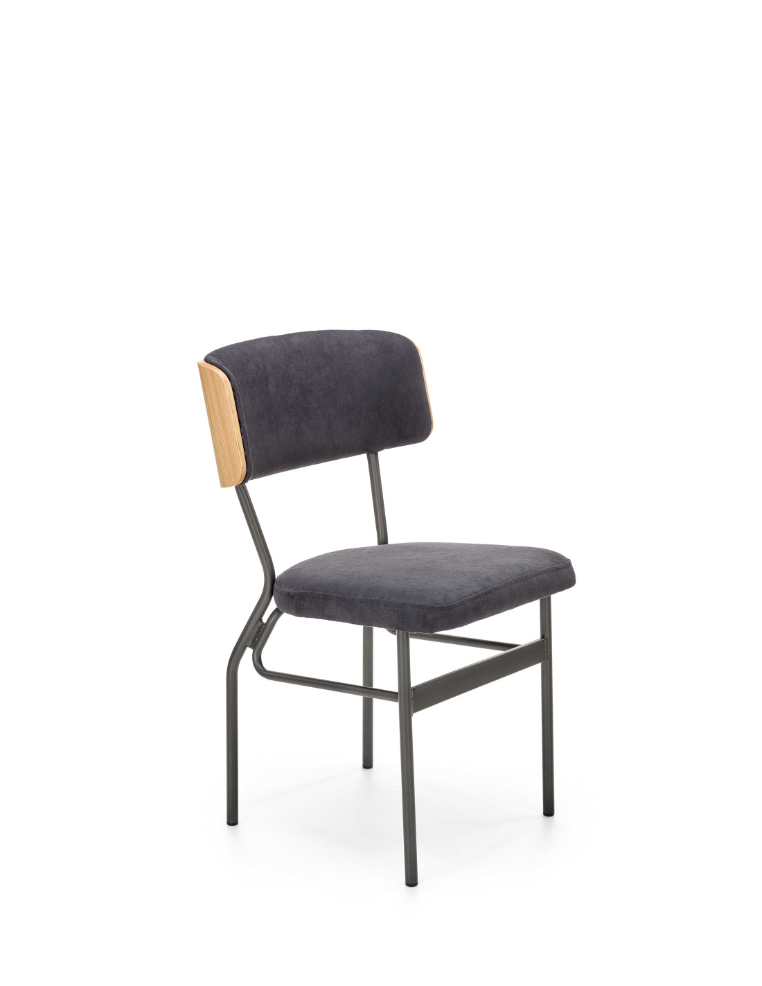 Krzesło wykonane jest z MDF okleinowanego naturalnym dębem oraz stali malowanej proszkowo, co zapewnia mu wyjątkowy styl i funkcjonalność.