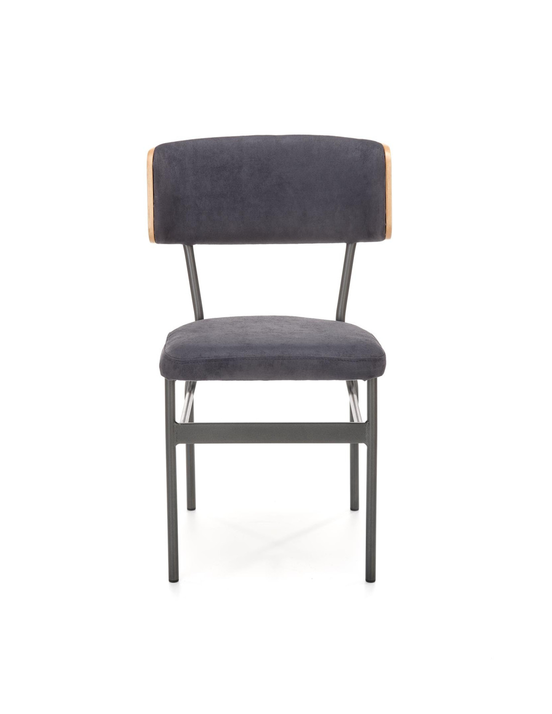 Krzesło dostępne jest w kolorze dąb naturalny z czarnym siedziskiem i oparciem, co nadaje mu elegancki wygląd.