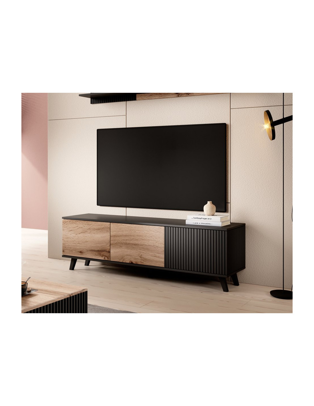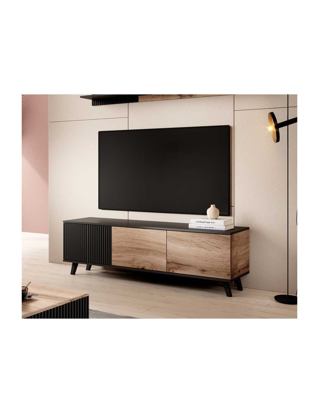 RANDOM Stolik RTV-1 Dąb Wotan/Czarny 150x47 cm | Nowoczesność w Salonie