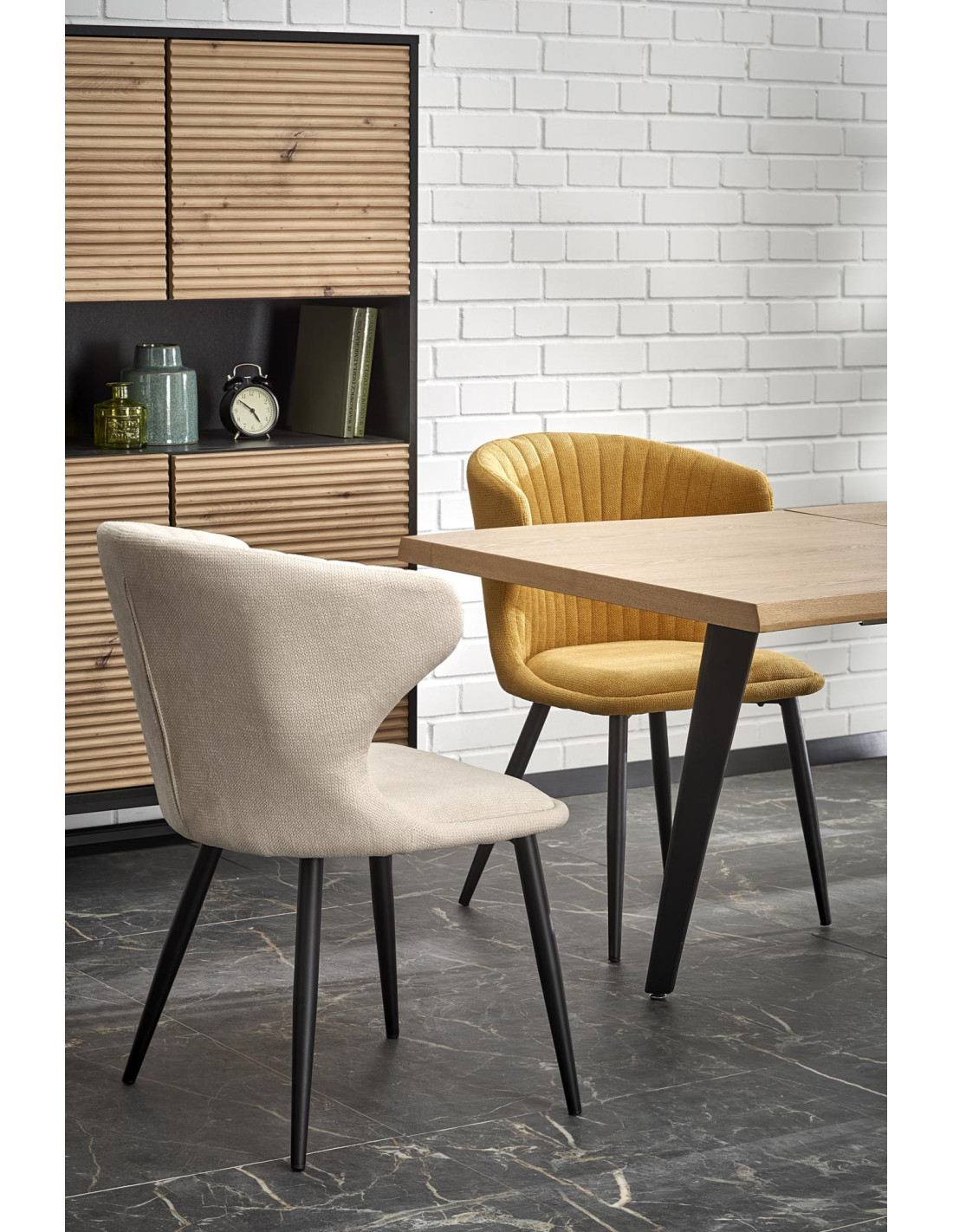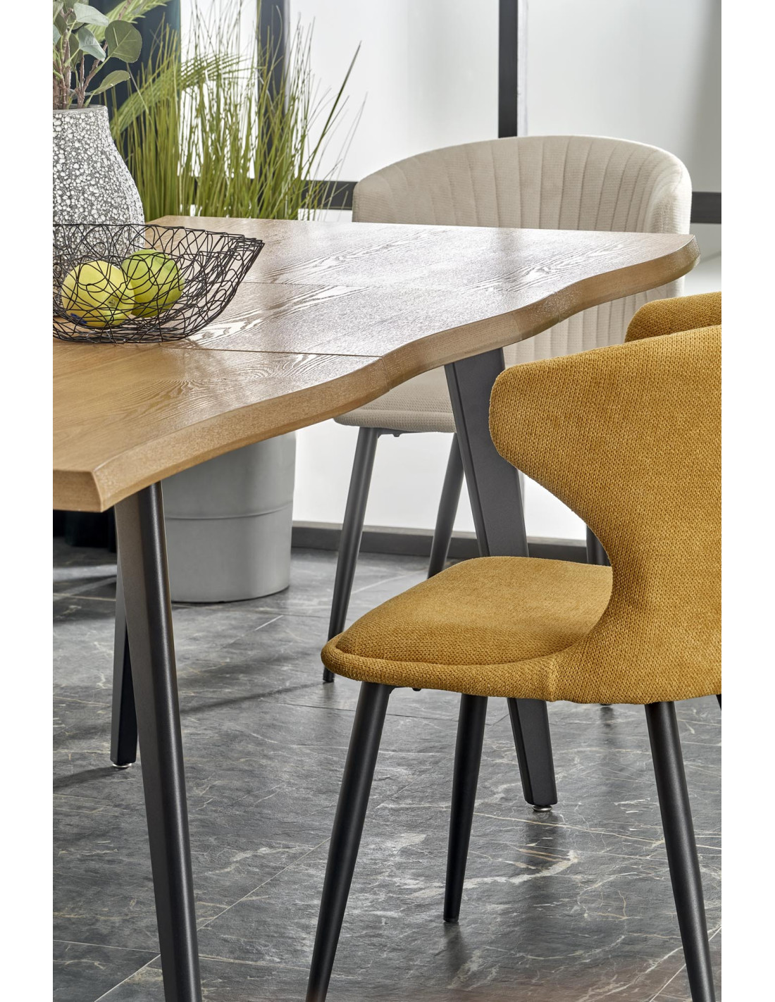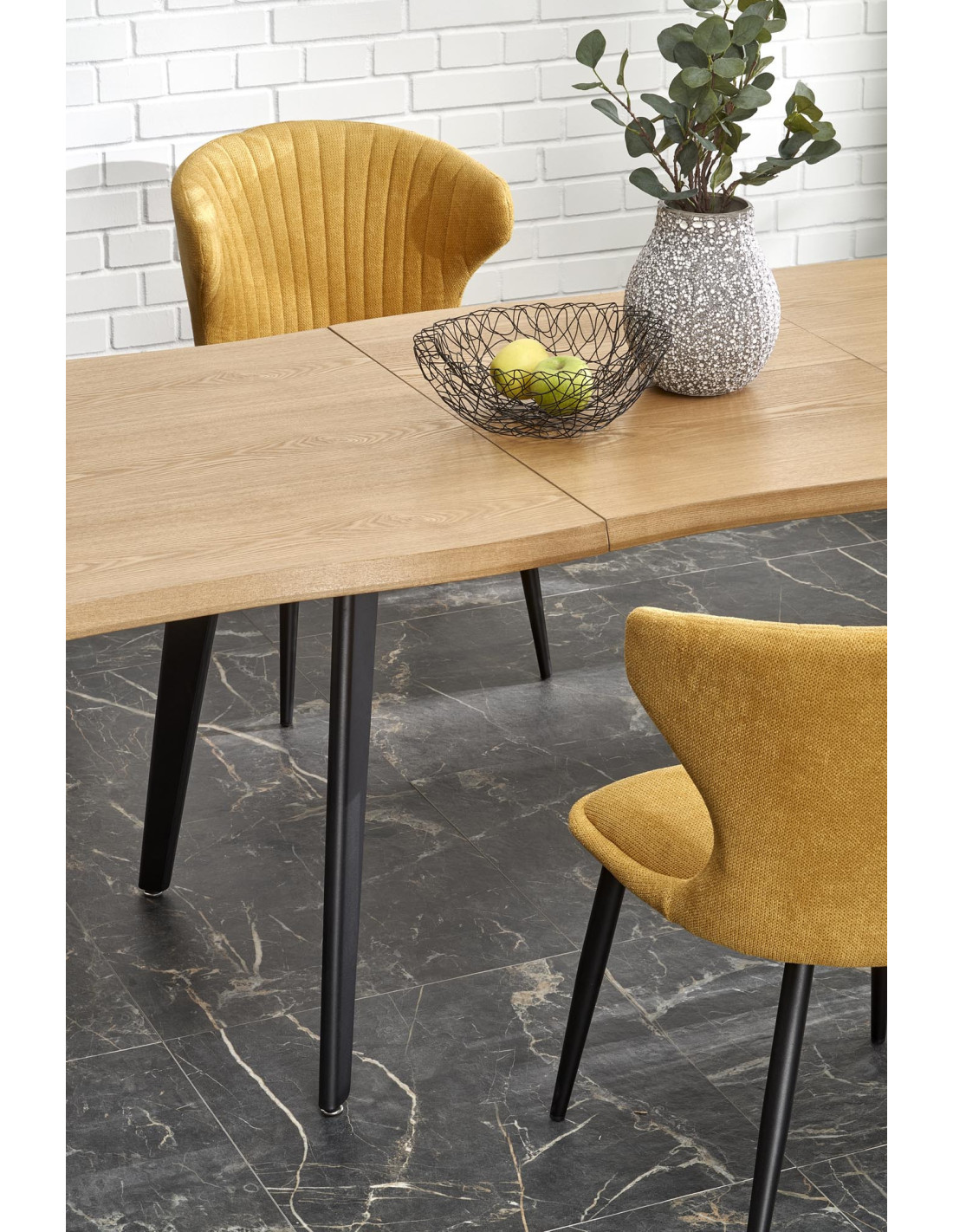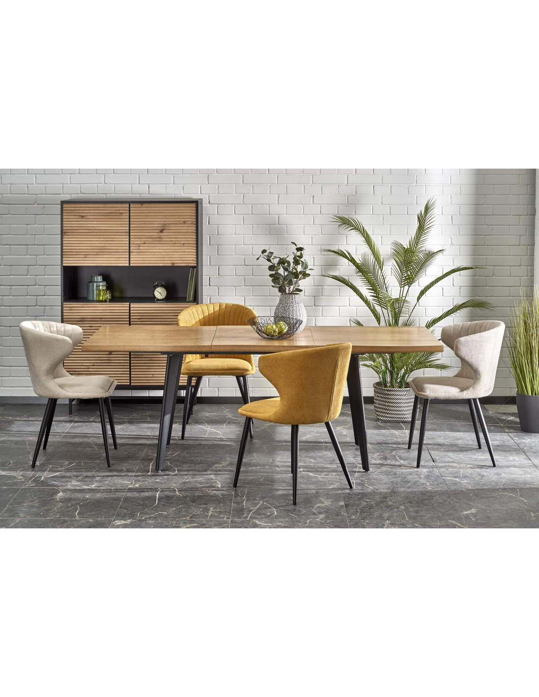 Wzbogać swoje wnętrze o rozszerzany stół VIOLANT2, który łączy w sobie nowoczesny design z funkcjonalnością! Jego prostokątny blat w naturalnym odcieniu dębu z zaokrąglonymi krawędziami oraz solidne, czarne metalowe nogi tworzą harmonijną całość, która będzie centralnym punktem Twojej jadalni. Wysoka jakość materiałów oraz staranne wykończenie sprawią, że stół ten stanie się nie tylko praktycznym, ale i stylowym elementem Twojego domu.