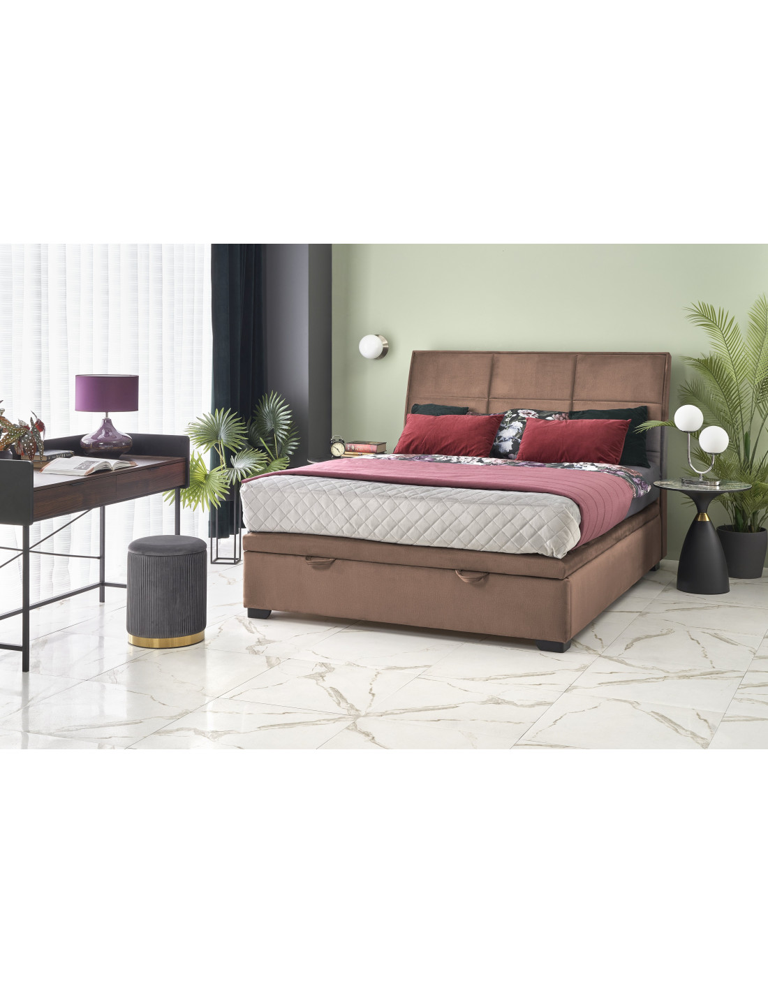 Dodaj odrobinę luksusu do swojej sypialni z łóżkiem CONTINENTAL, które łączy w sobie elegancki design oraz funkcjonalność. To więcej niż tylko mebel do spania; to stylowy element, który wprowadzi harmonię do Twojej przestrzeni. Pikowany zagłówek nie tylko przyciąga wzrok, ale także zapewnia wygodę podczas relaksu, a pojemnik na pościel oferuje dodatkowe miejsce na przechowywanie, czyniąc łóżko wyrafinowanym wyborem do nowoczesnych wnętrz.