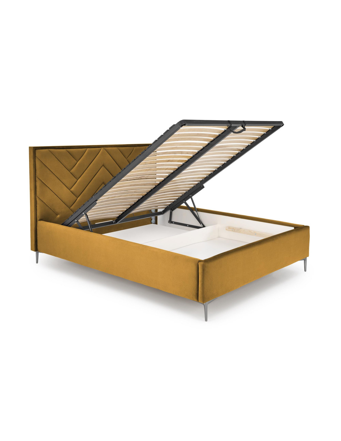 Dzięki podnoszonemu stelażowi oraz pojemnikowi na pościel, korpus SERENO to doskonałe rozwiązanie do przechowywania. Jego prostokątny kształt oraz wyrazisty kolor przyciągną wzrok i wprowadzą do Twojej przestrzeni odrobinę luksusu. Stwórz przytulne miejsce odpoczynku, które spełni wszystkie Twoje oczekiwania.