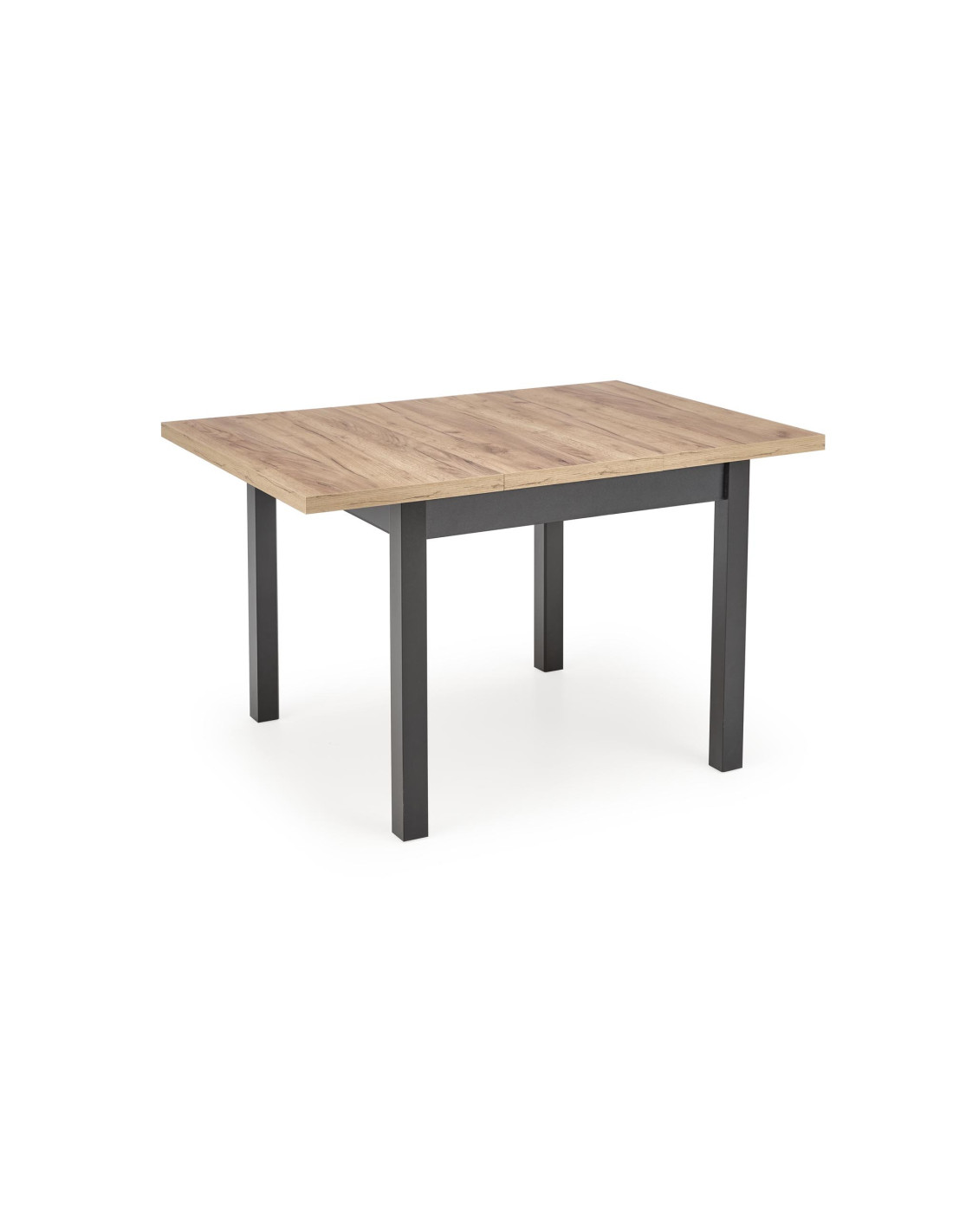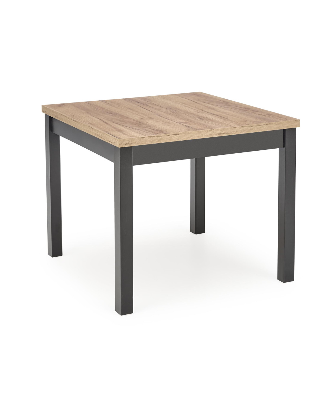 Zachwyć się rozszerzanym stołem TIAGO, który łączy w sobie wyrafinowany styl oraz praktyczne rozwiązania! Ten stół, w kolorze dąb craft z czarnymi nogami, wykonany z płyty meblowej laminowanej, doskonale wpasuje się w nowoczesne i minimalistyczne wnętrza, nadając im wyjątkowego charakteru.