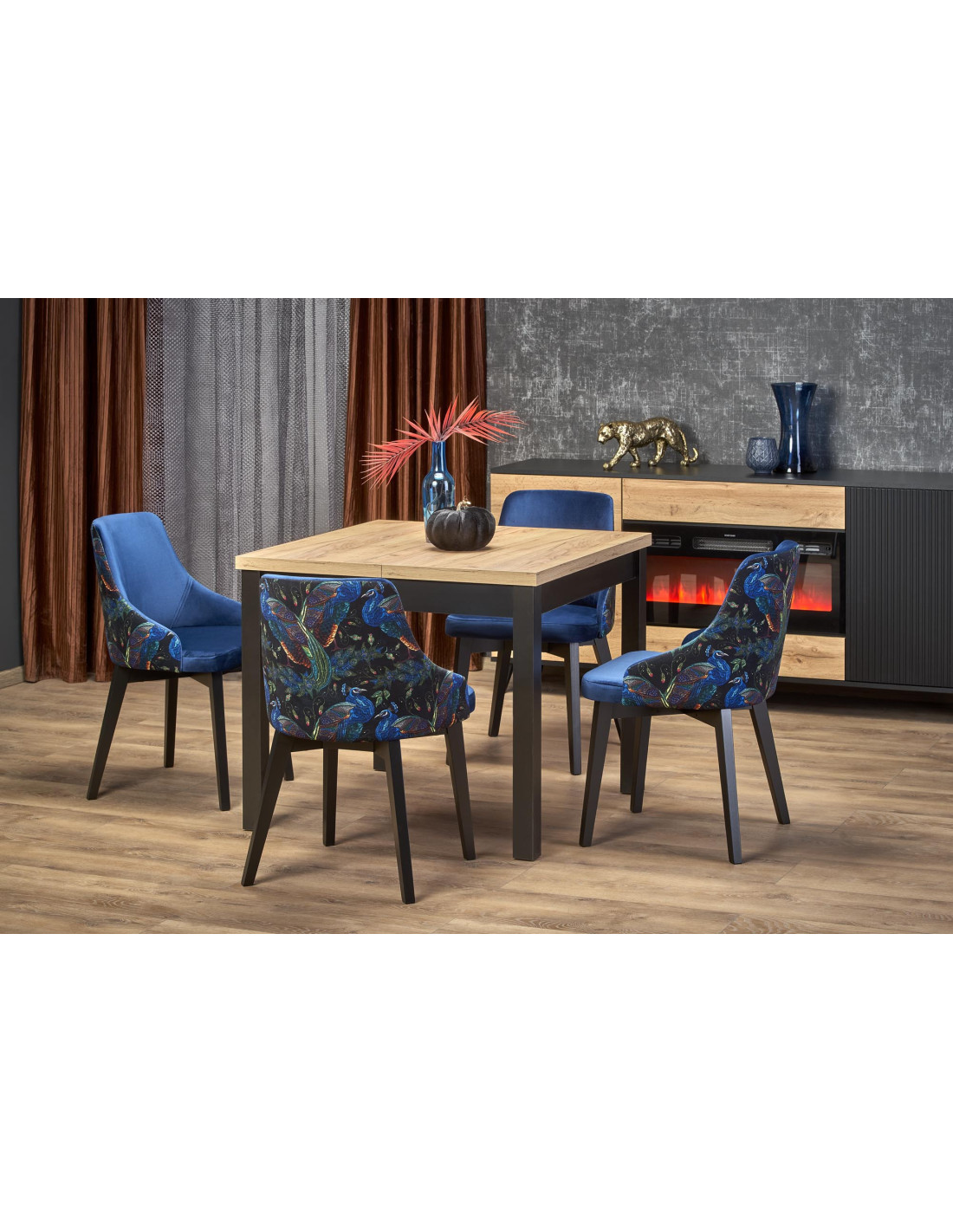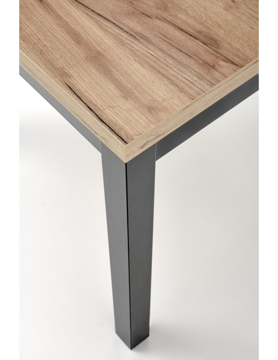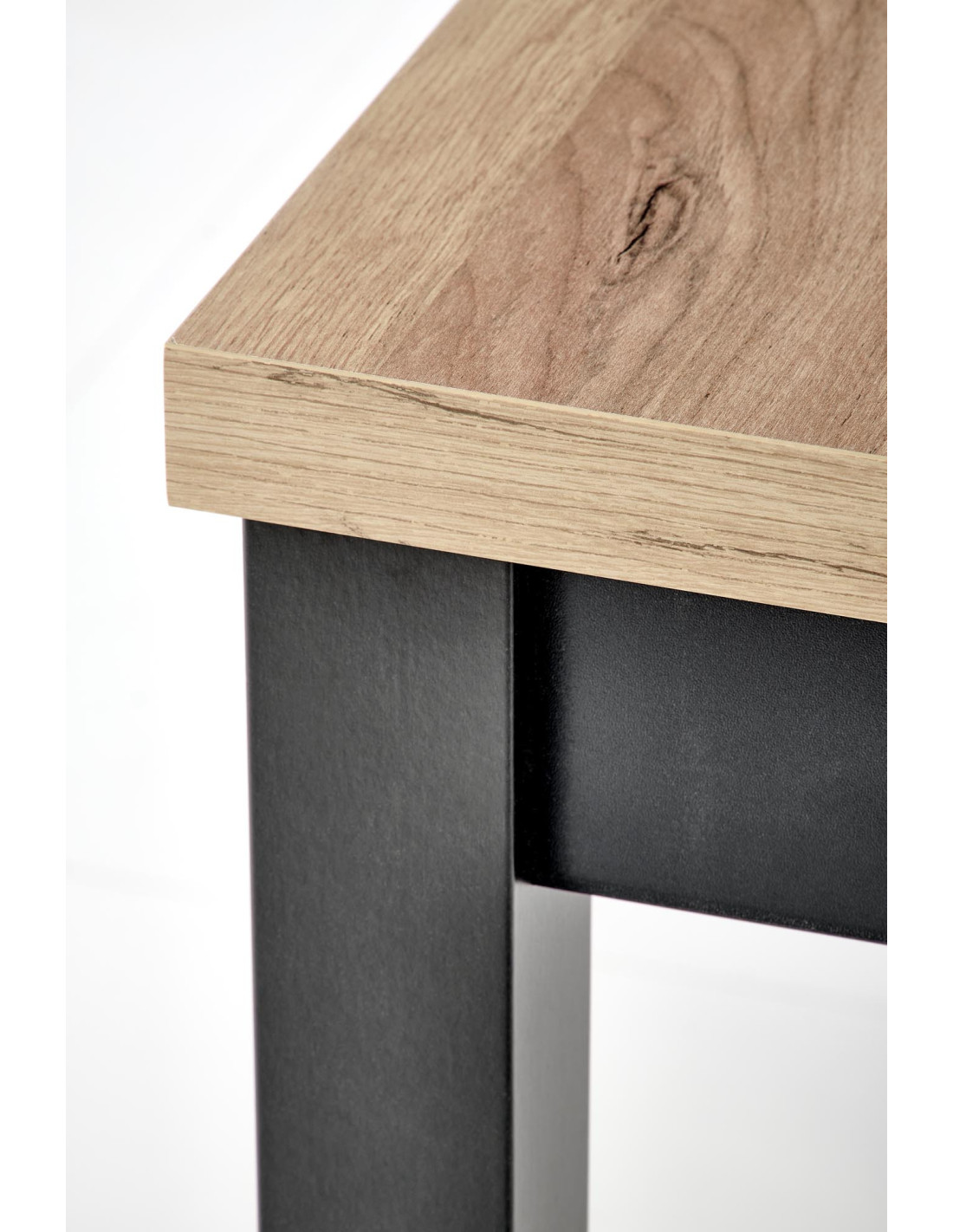 Stół TIAGO wykonany jest z płyty meblowej laminowanej w kolorze dąb craft oraz czarnej.
