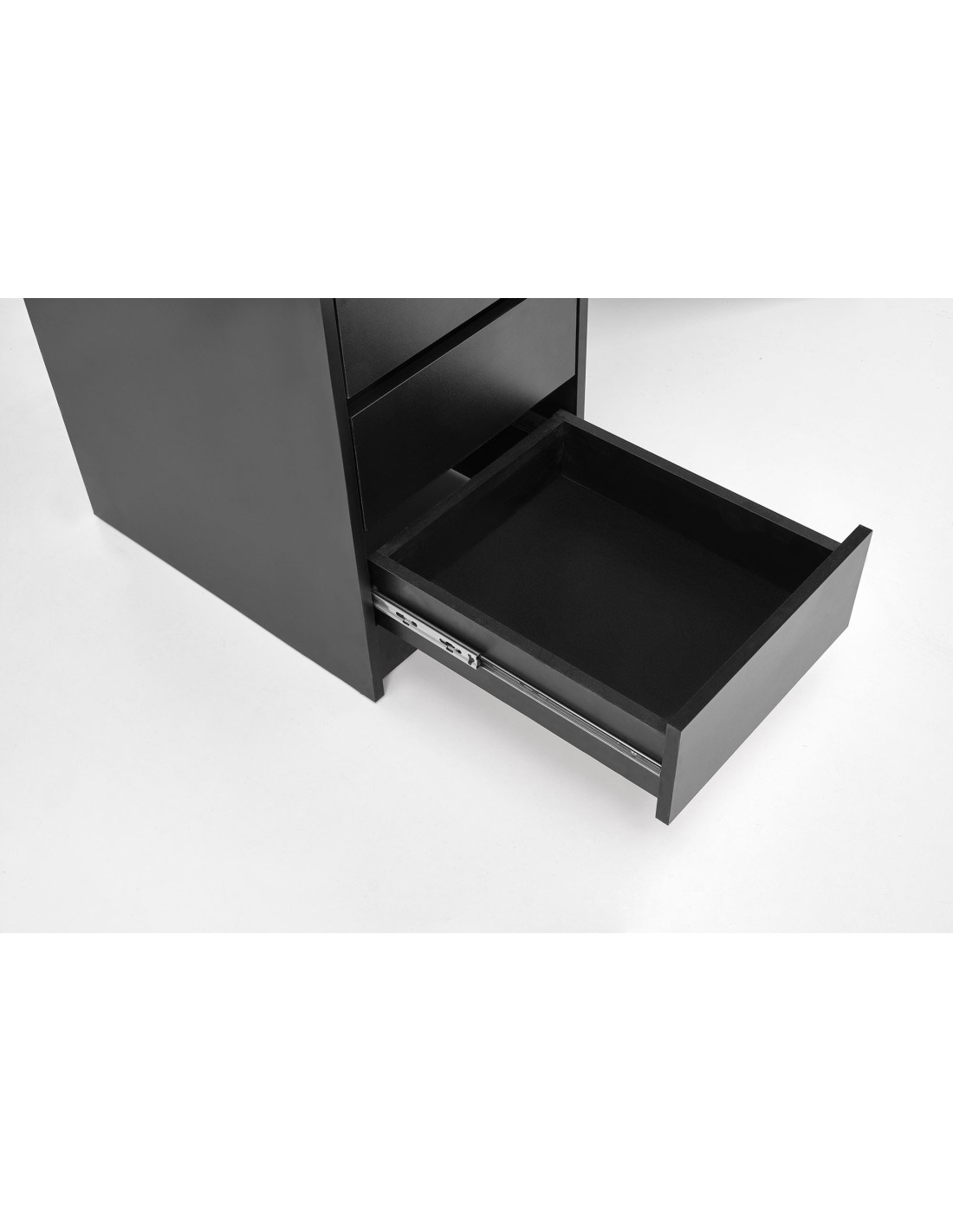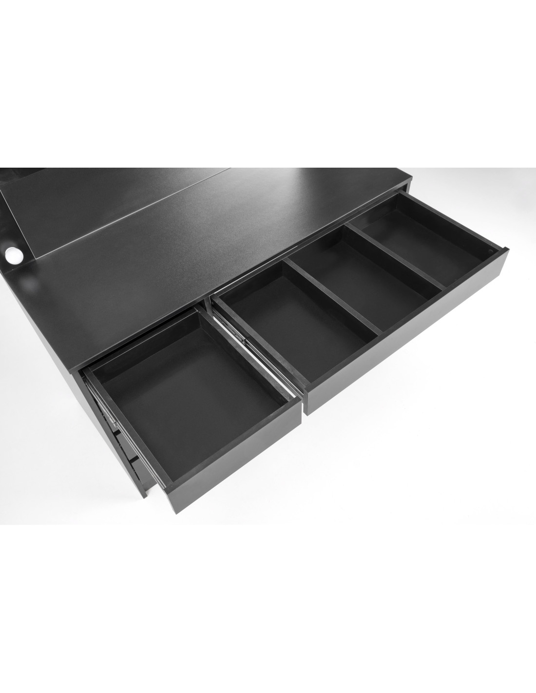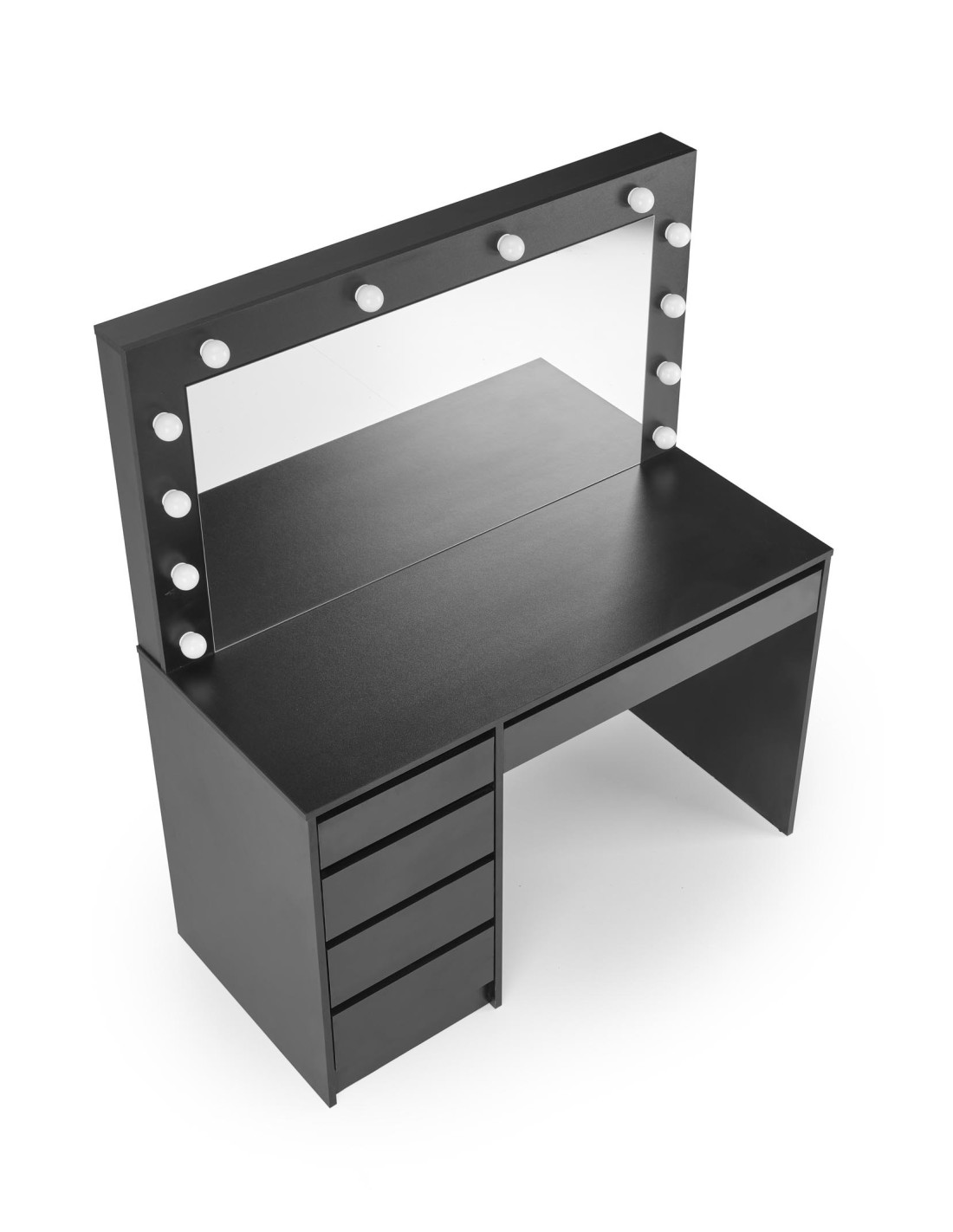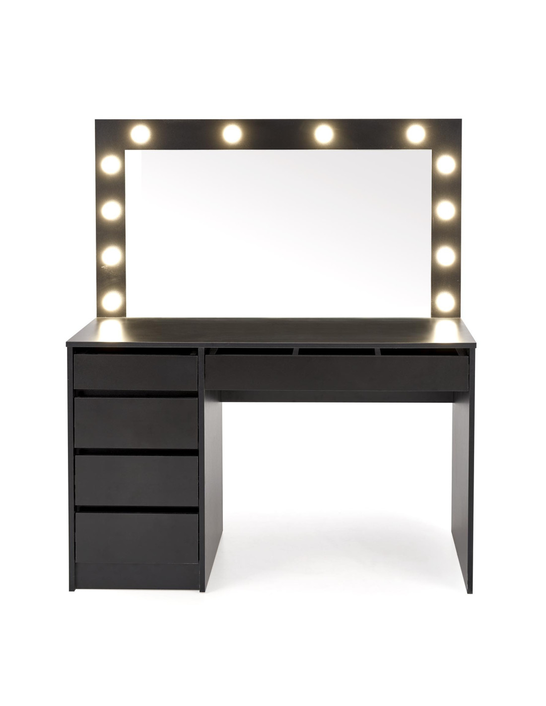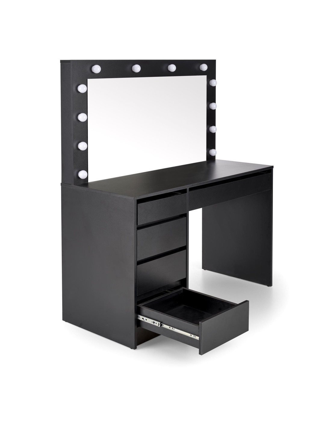 Ulepsz swoje wnętrze! Toaletka HOLLYWOOD XL to połączenie wyrafinowanej elegancji z nowoczesną funkcjonalnością. Jej prostokątny kształt oraz minimalistyczny design sprawiają, że staje się nie tylko meblem, ale także wyjątkowym akcentem w każdym pomieszczeniu. Wykonana z wysokiej jakości płyty meblowej okleinowanej w eleganckim czarnym kolorze, idealnie współgra z otaczającym ją wystrojem.