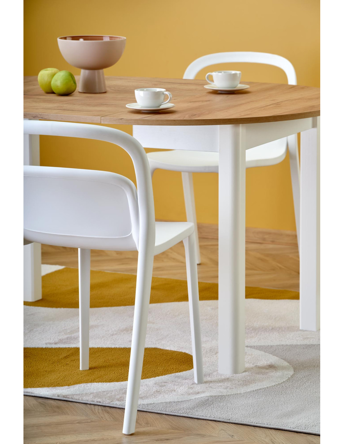 Zaprojektowany z myślą o Tobie rozszerzany stół WĘZYR to doskonałe połączenie nowoczesnego designu z funkcjonalnością! Owalny kształt blatu wykonany z płyty meblowej okleinowanej w kolorze dąb craft nadaje mu naturalny, ciepły wygląd, który harmonijnie komponuje się z białymi nogami i ramą z MDF okleinowanego. Ten stół stanie się sercem Twojej jadalni, idealnym miejscem na rodzinne spotkania i przyjęcia.
