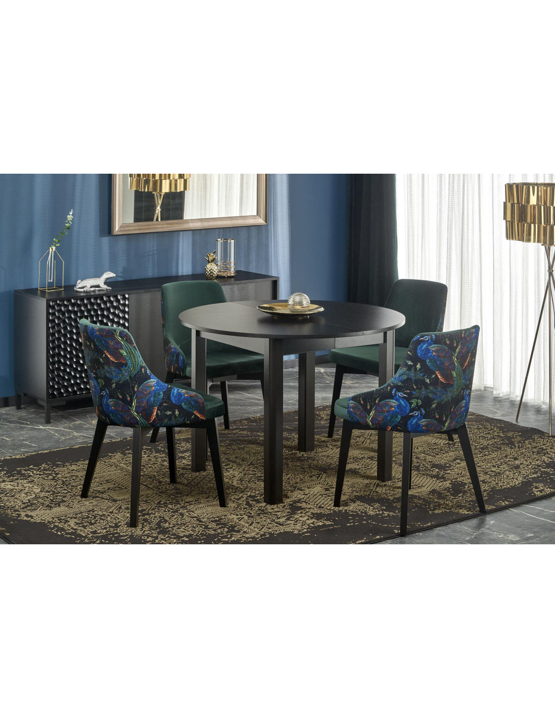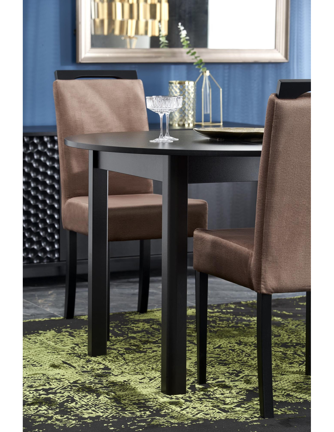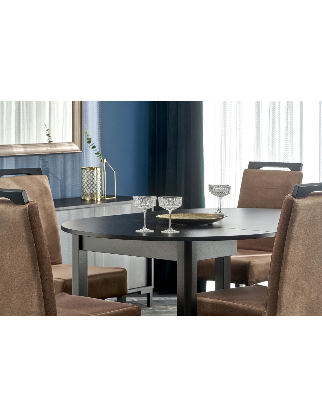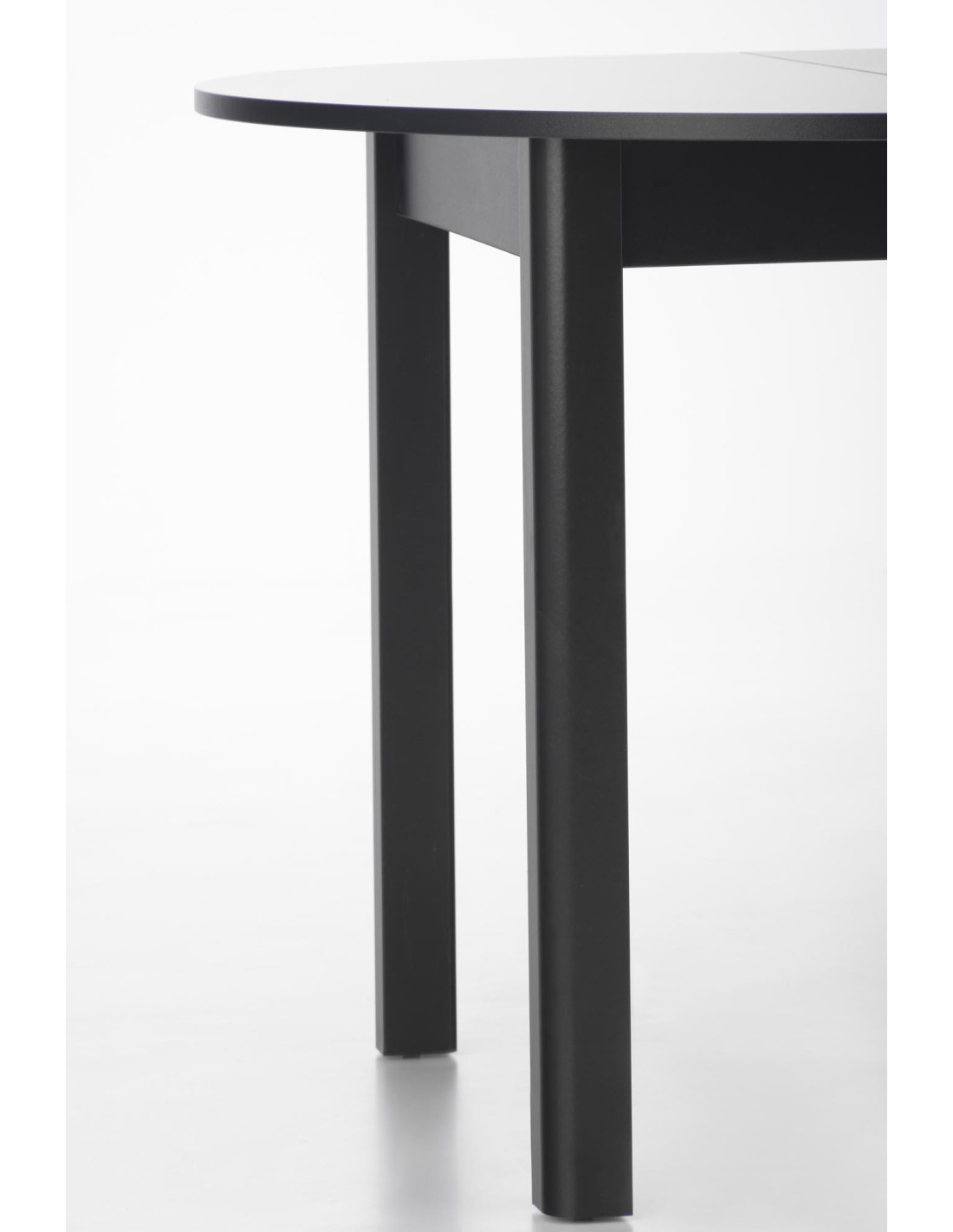 Podkreśl elegancję rozszerzanego stołu RINGO, który łączy w sobie nowoczesny design z minimalistycznym stylem! Jego czarny blat oraz solidne nogi tworzą harmonijną całość, która doskonale wpisuje się w nowoczesne aranżacje wnętrz. Ten okrągły stół nie tylko zachwyca estetyką, ale także funkcjonalnością, dzięki czemu stanie się centralnym punktem Twojej jadalni.