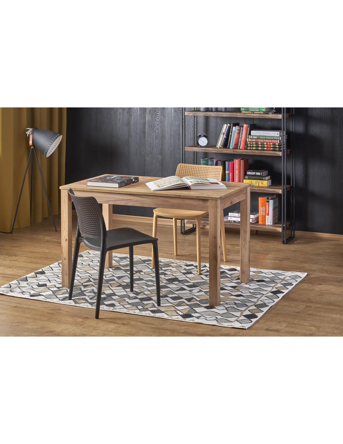 Stół KSAWERY wykonany jest z płyty laminowanej, ABS na obrzeżach oraz MDF laminowanego na nogach.