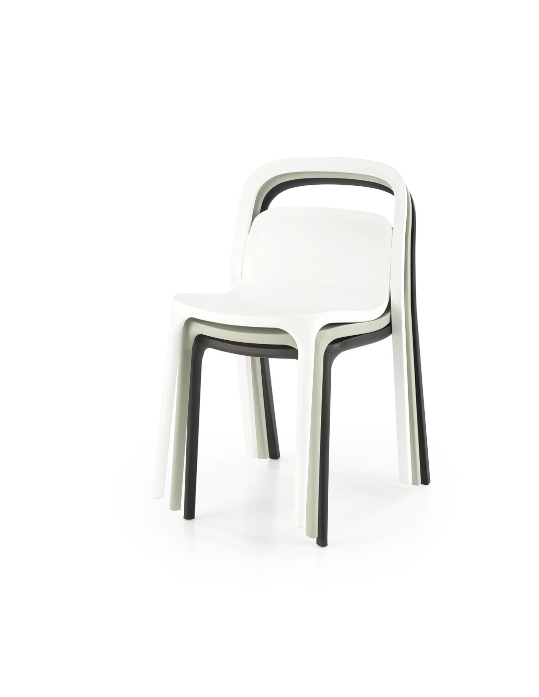 Krzesło wyróżnia się ergonomicznym kształtem, gładką powierzchnią oraz możliwością sztaplowania.