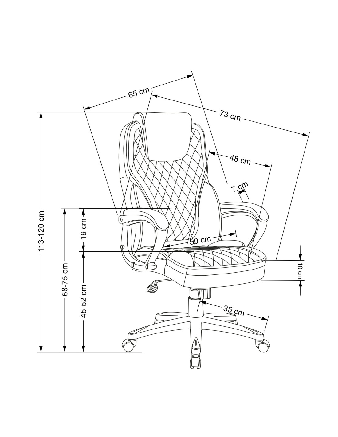 Szerokość wynosi 65 cm, głębokość 73 cm, a wysokość to 113-120 cm, z możliwością regulacji wysokości siedziska od 45 do 52 cm.