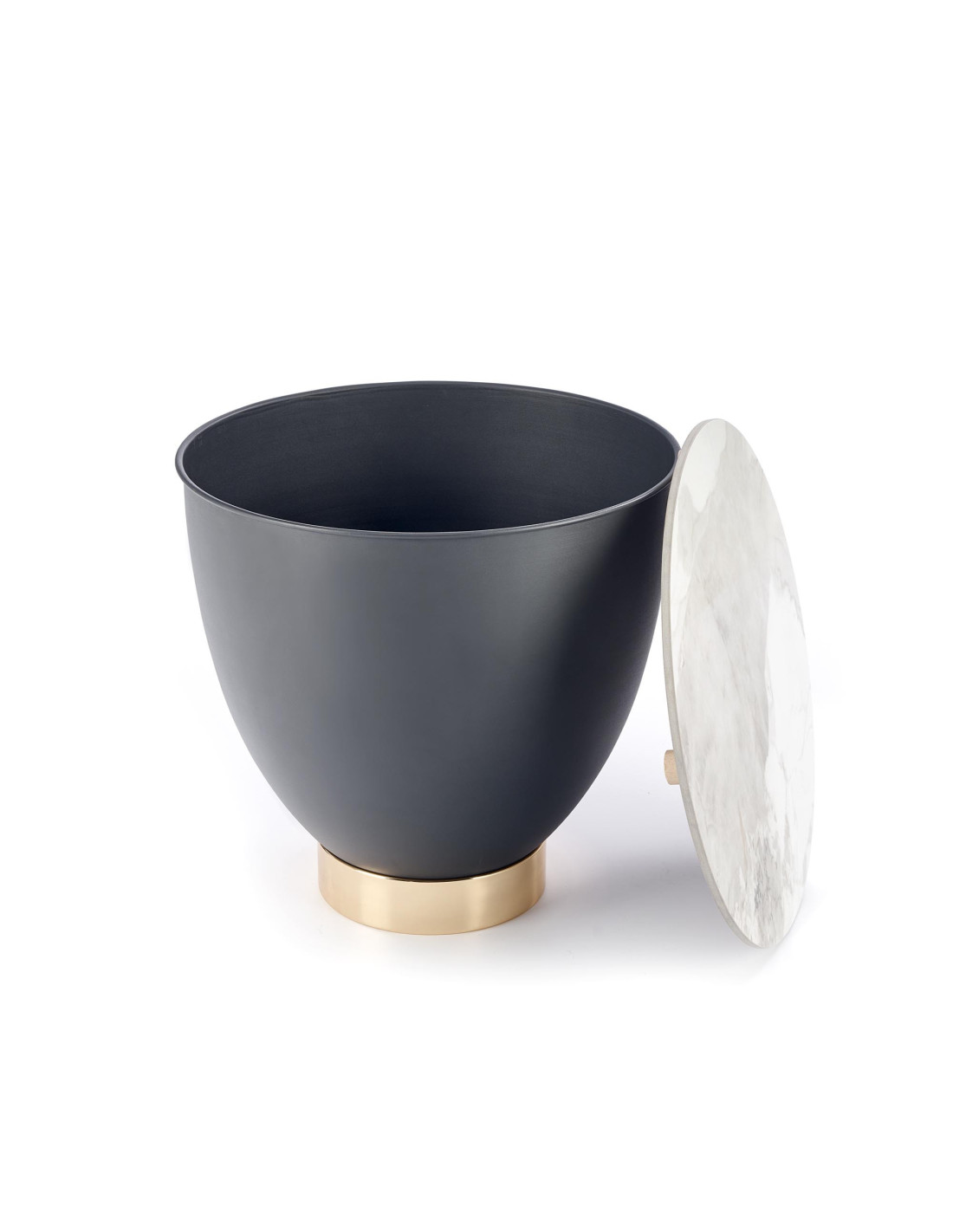 CECILIA S Ława Okrągła fi48 cm z Pojemnikiem - Biały Marmur/Popiel/Złoty