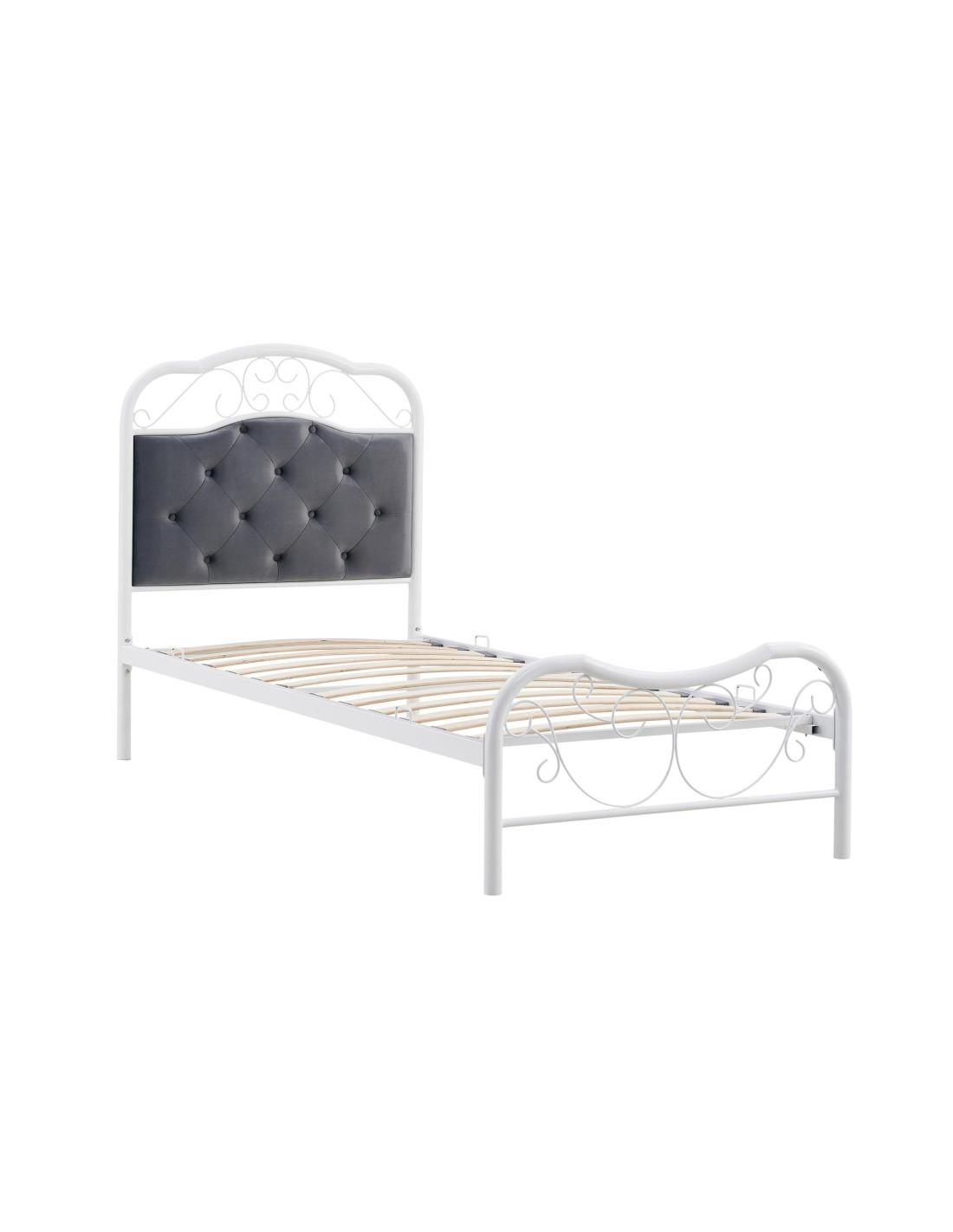 FABRIZIA łóżko 90x200 cm Białe z Pikowanym Popielatym Zagłówkiem i Stelażem