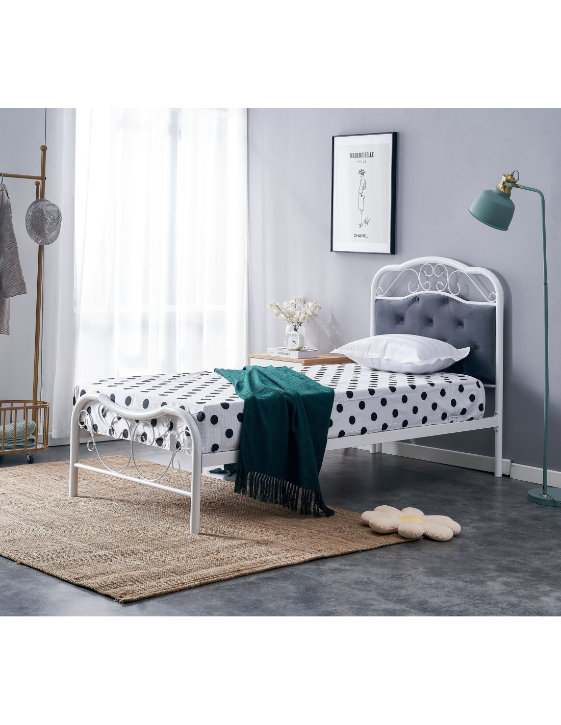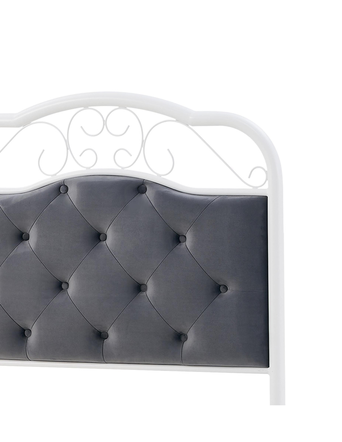 Ciesz się wyjątkowym designem łóżka metalowego FABRIZIA, które łączy w sobie klasyczną elegancję oraz romantyczny styl. To nie tylko mebel do spania, ale również prawdziwa ozdoba Twojej sypialni. Z wyjątkowym, pikowanym zagłówkiem w odcieniu popielatym, które wprowadza harmonię i spokój, łóżko staje się centralnym punktem każdej stylizowanej przestrzeni.