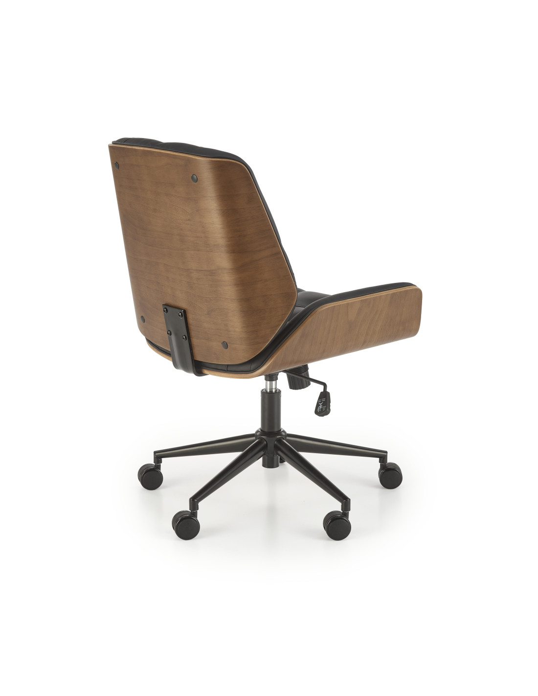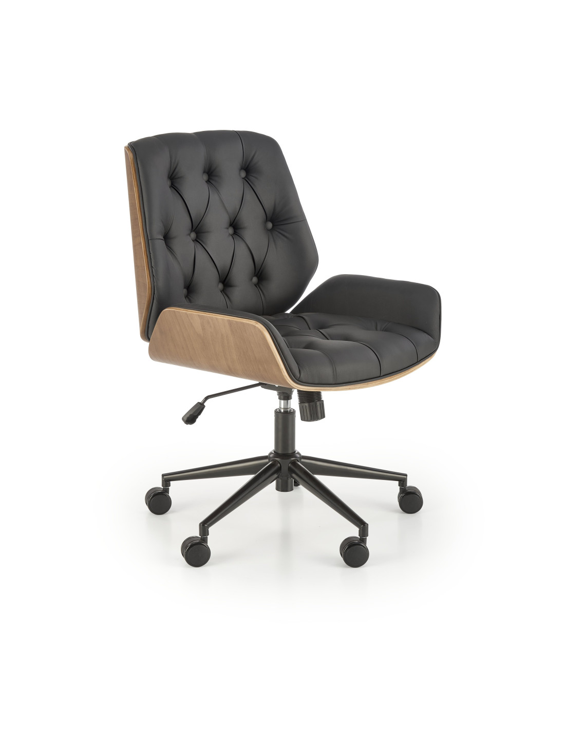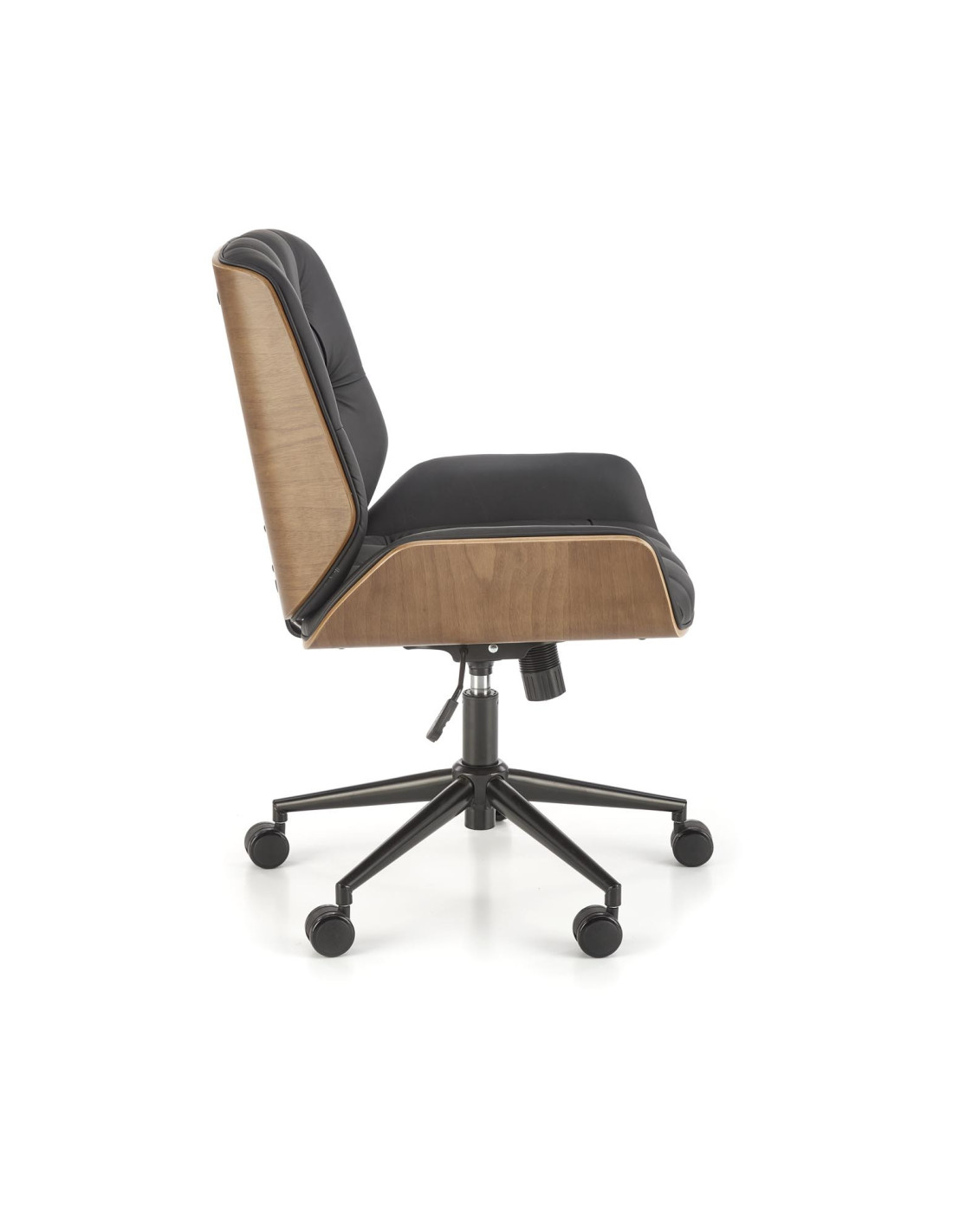 Stwórz doskonałe wnętrze z fotelem biurowym GAVIN, który harmonijnie łączy nowoczesny design z luksusowym komfortem. Jego elegancka, czarna tapicerka oraz orzechowe boki wykonane ze sklejki giętej przyciągają wzrok i nadają każdemu pomieszczeniu wyjątkowego charakteru. Dzięki miękkim pikowaniom możesz cieszyć się wygodą, która pozwoli Ci skupić się na pracy. Innowacyjny mechanizm tilt umożliwia komfortowe bujanie się w fotelu, co wspomaga krążenie krwi oraz rozluźnia uda. Dodatkowo, mechanizm ten pozwala na ustawienie oparcia w pionie, regulację wysokości siedziska oraz 360-stopniowy obrót.