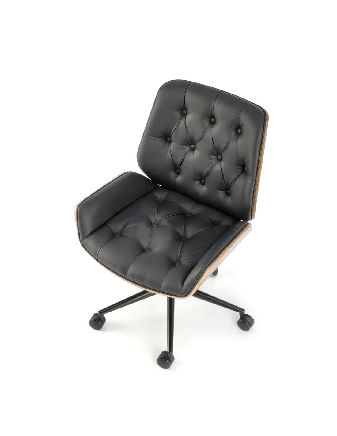 GAVIN Fotel Pikowany Czarno Orzechowy Sklejka/Eco Skóra - Komfort i Styl
