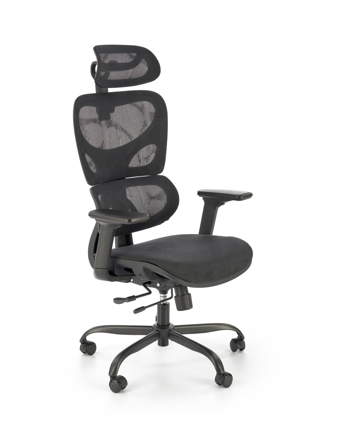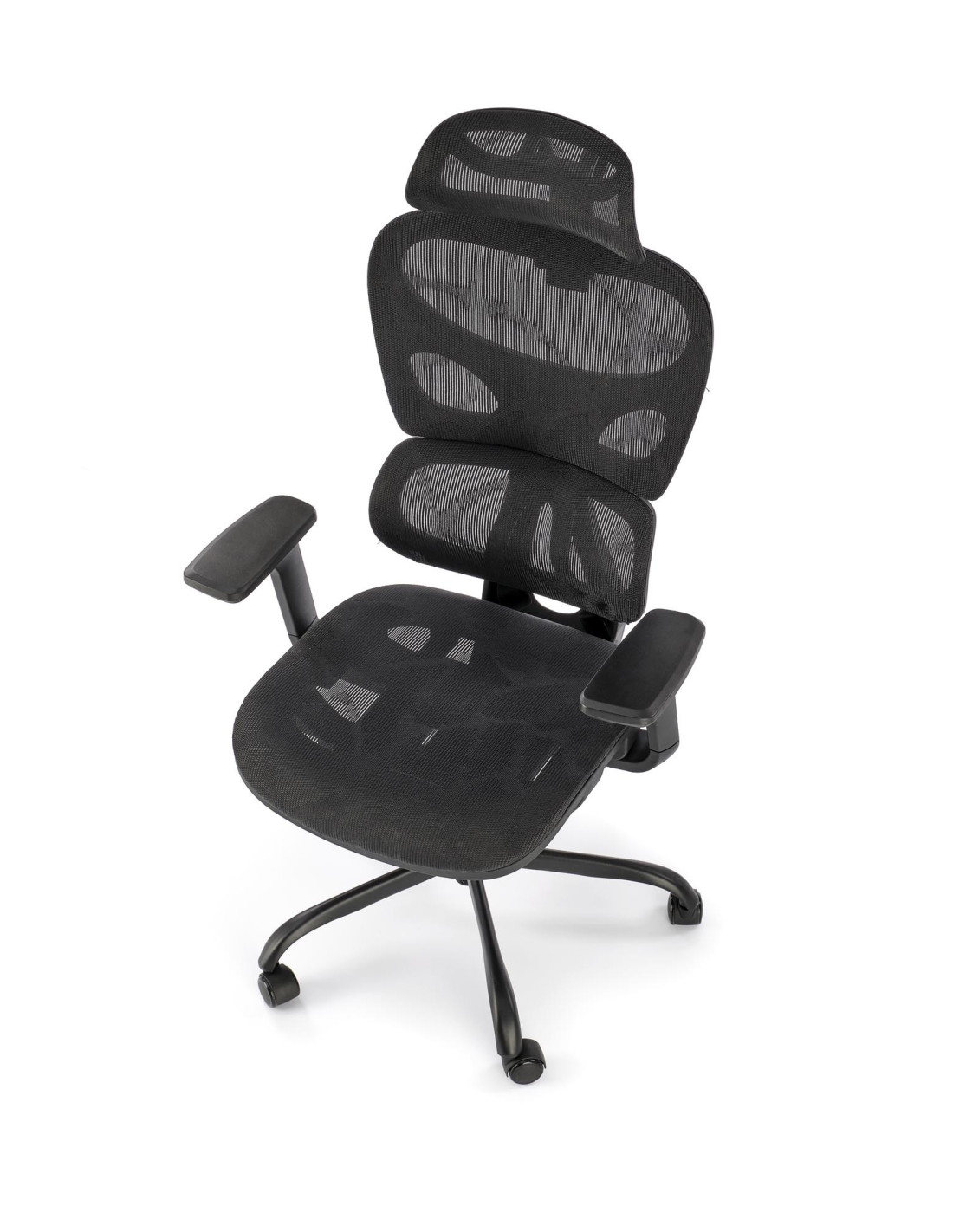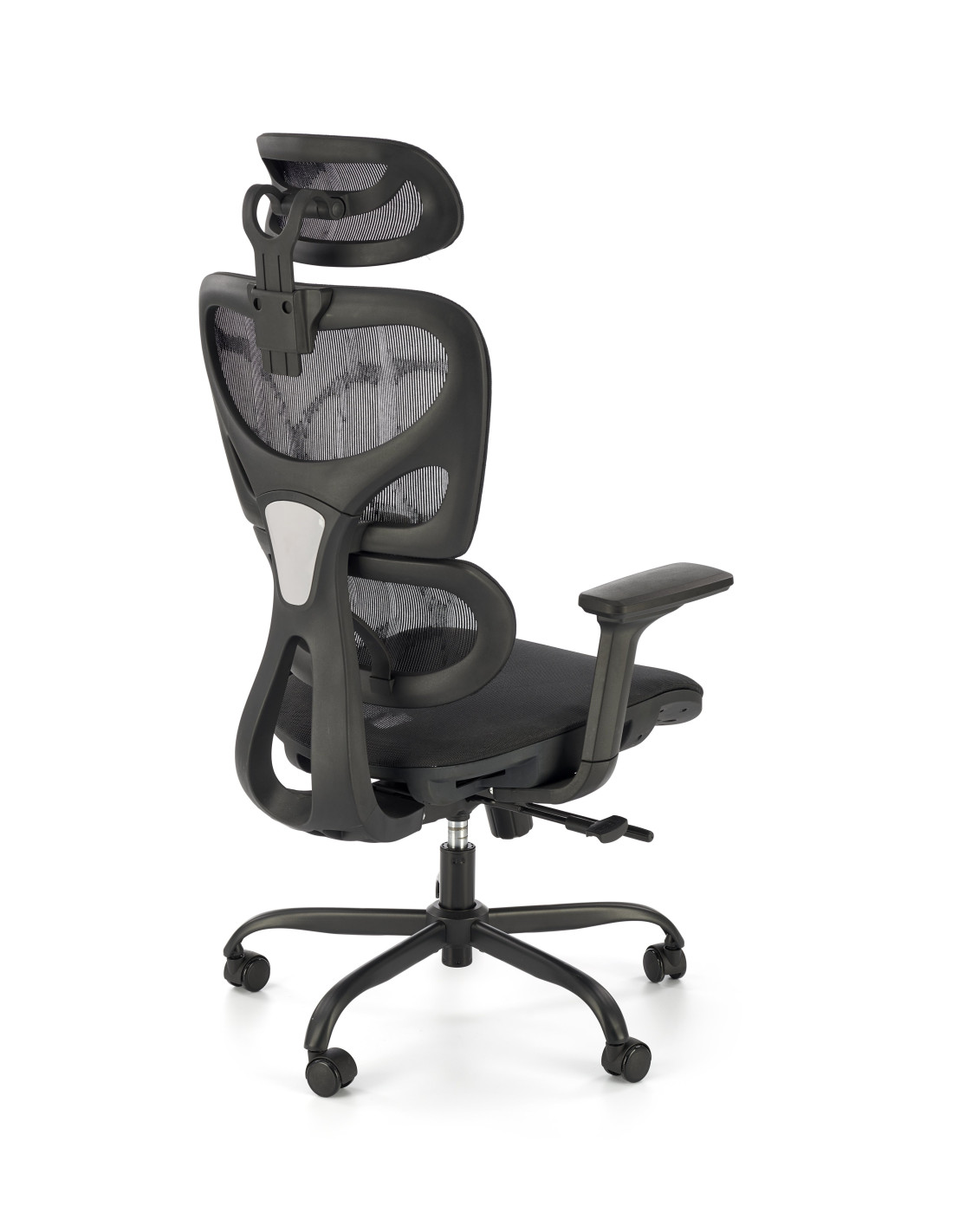 GOTARD Fotel Biurowy Czarny z Regulacją Zagłówka oraz Wysuwanym Siedziskiem