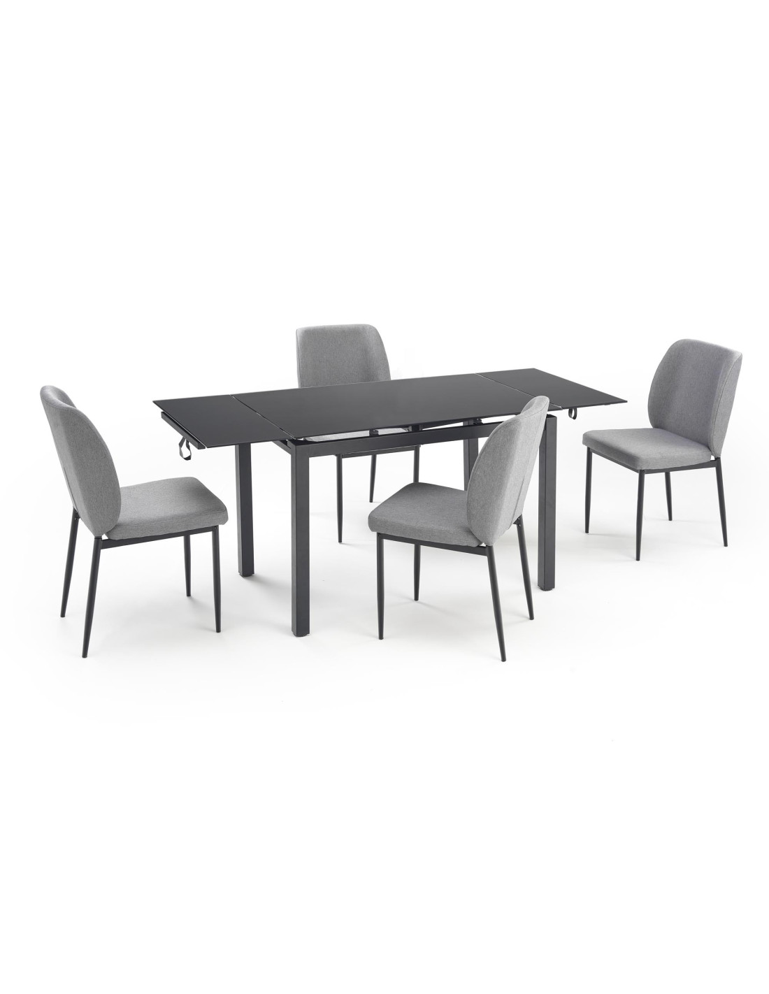 JASPER Zestaw Stół Rozkładany 110-170 cm + 4 Krzesła Czarny/Popielaty - Elegancja i Minimalizm