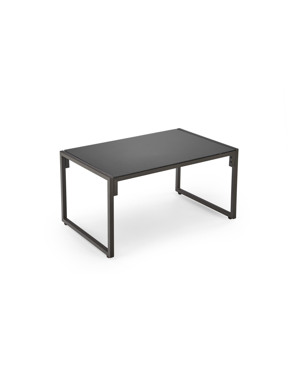 Zestaw wykonany jest z stali malowanej proszkowo, szkła oraz tkaniny, co zapewnia jego estetykę i funkcjonalność.