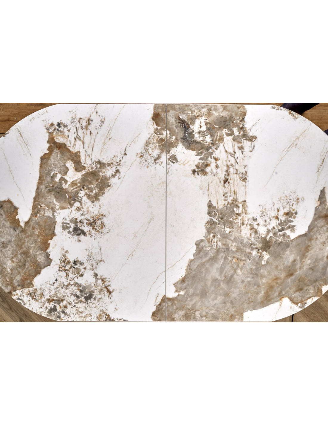 ROBINSON Stół Rozkładany Owalny 160-200cm Ceramika Beżowy Marmur/Cappuccino