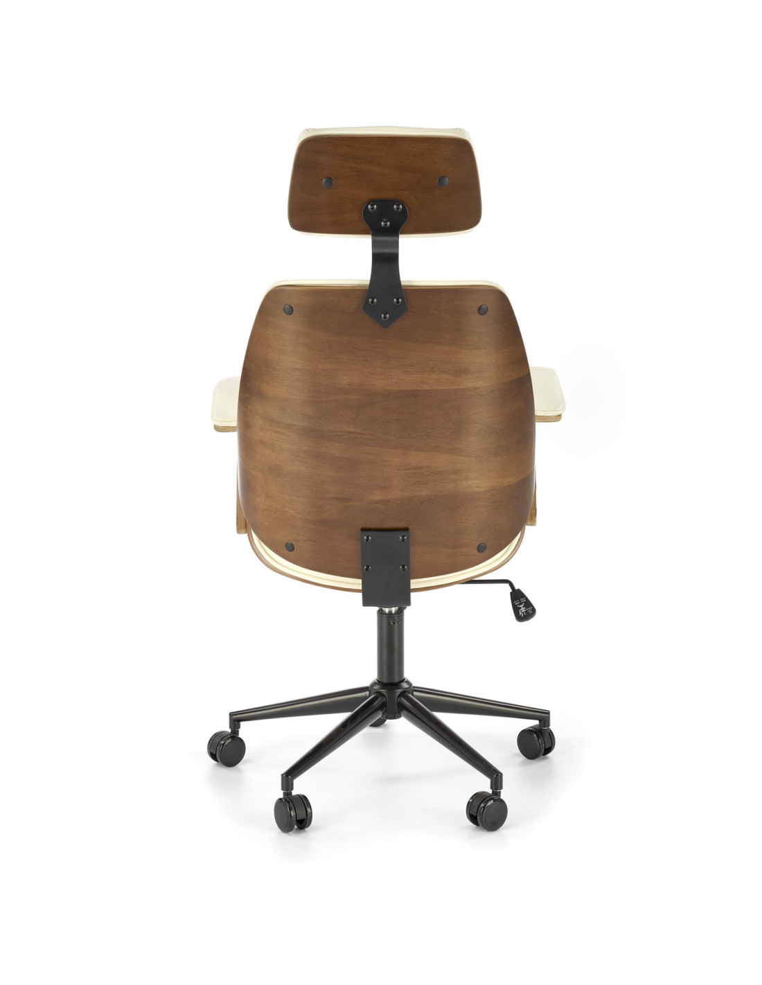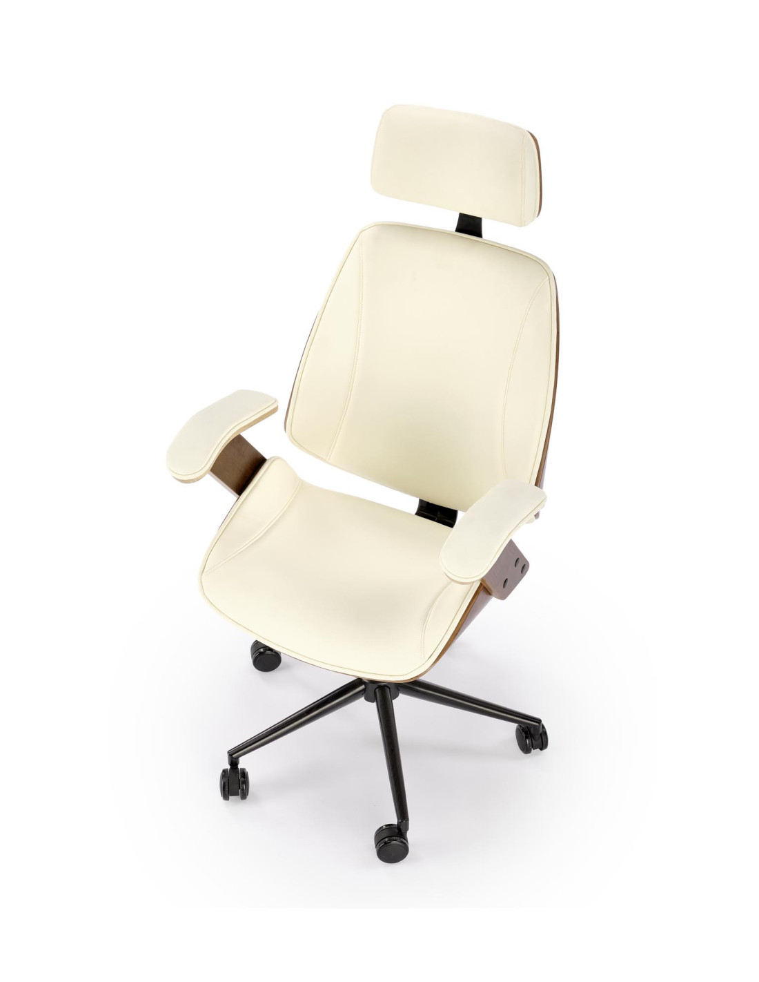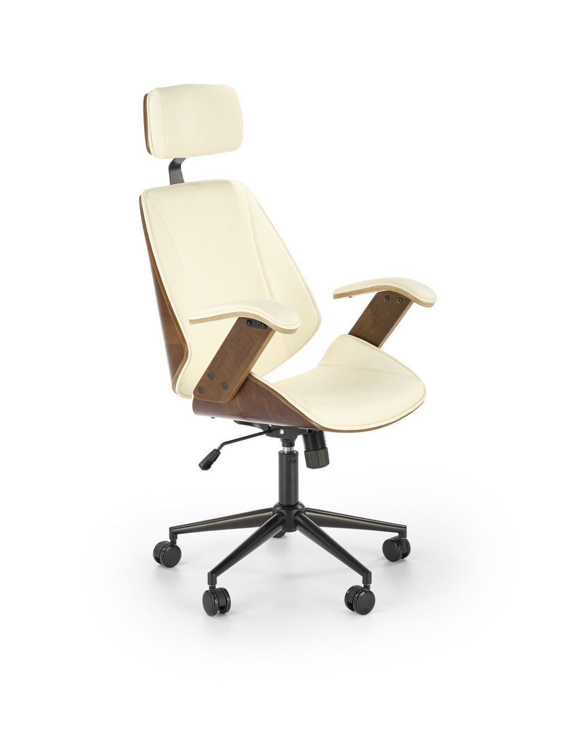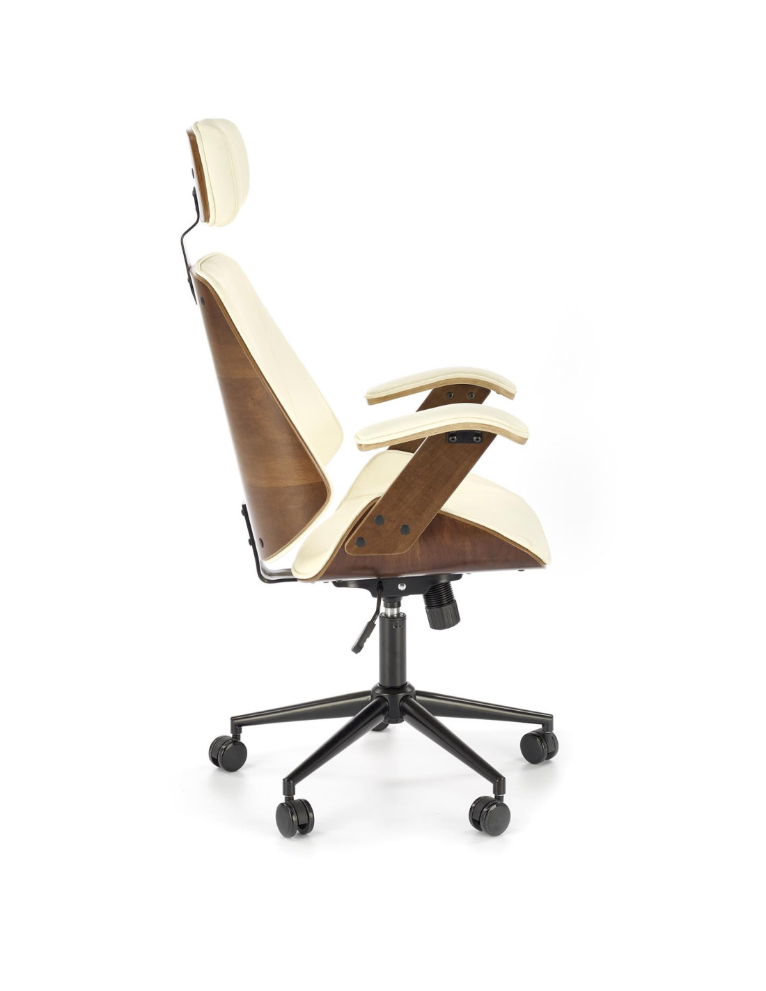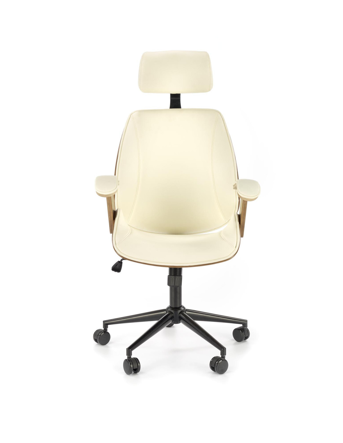 Szukasz rozwiązania? Oto ono! Fotel biurowy IGNAZIO to połączenie elegancji oraz ergonomii, które wprowadzi do Twojego wnętrza wyjątkowy klimat. Jego orzechowe akcenty oraz kremowa tapicerka sprawiają, że jest to mebel nie tylko funkcjonalny, ale również stylowy. Ergonomiczne wyprofilowanie siedziska i oparcia, a także regulowany zagłówek to elementy, które zapewniają komfort zarówno podczas pracy, jak i w czasie relaksu.