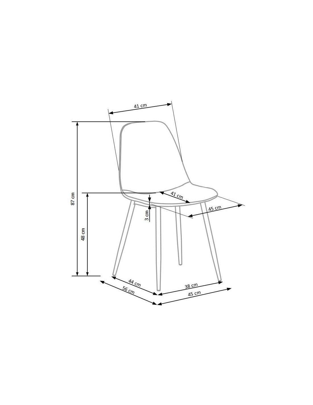 Krzesło K417 wykonane jest z tkaniny typu velvet oraz stalowych nóg malowanych proszkowo.