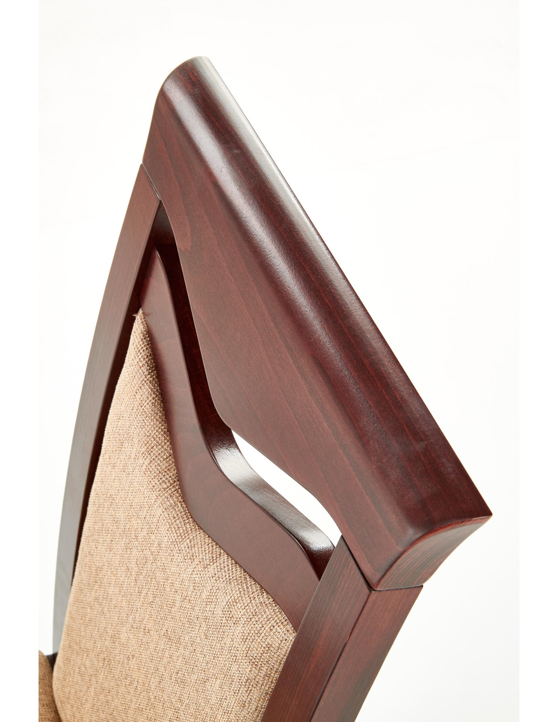 Dodaj odrobinę luksusu dzięki krzesłu CITRONE, które łączy w sobie klasyczny design z komfortem użytkowania. Wykonane z drewna bukowego w ciemnym orzechowym kolorze, krzesło to wyróżnia się prostymi liniami oraz delikatnymi zaokrągleniami, które nadają mu elegancki charakter. Oparcie wyściełane tkaniną w beżowym odcieniu sprawia, że każda chwila spędzona na tym krześle staje się przyjemnością.