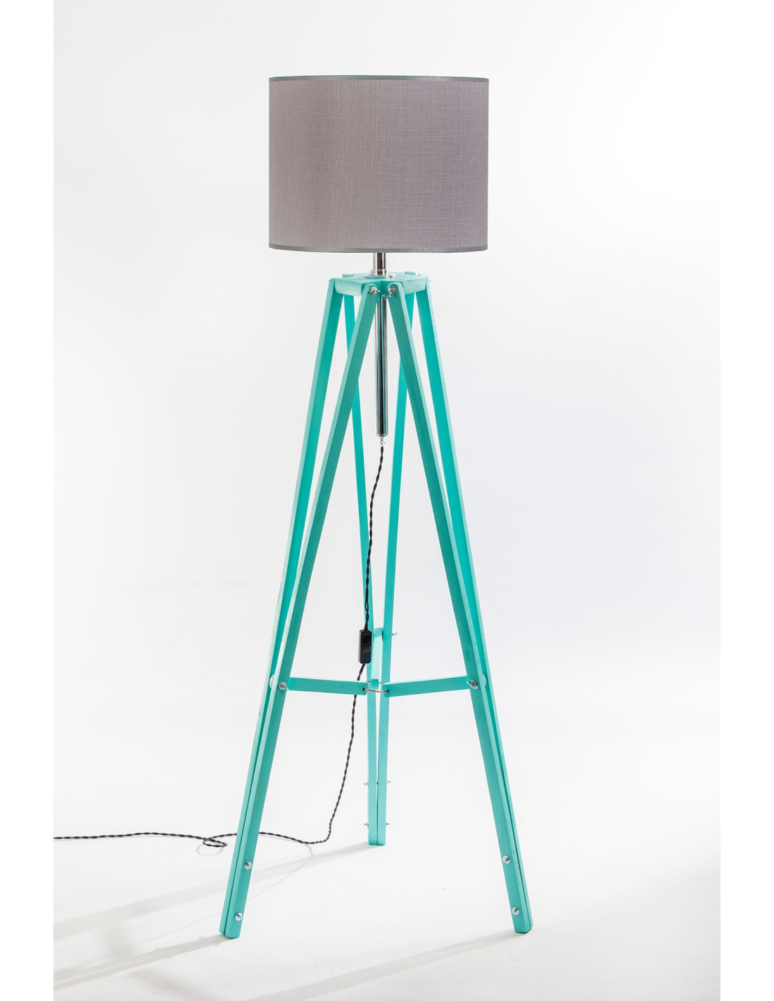 Lampa podłogowa TRIPOD w kolorze miętowym/abażur szary