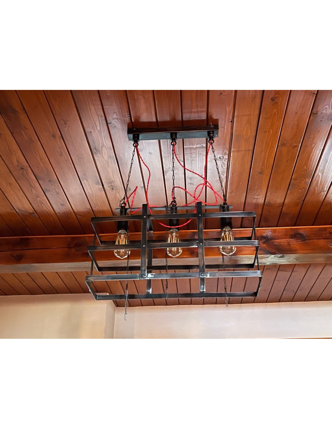 Lampa INDUSTRIALNA HANNIBAL to lampa trzy punktowa wykonana głownie z elementów ze stali i odlewów żeliwnych. W przeciwieństwie do poprzedniej naszej lampy SUPERNOVA gdzie dominowały bryły, kształty kuliste i okręgi teraz mamy do czynienia z prostopadłościanami, prostokątami, płaszczyzny zostały załamane pod kątem prostym. Hannibal to lampa, która przyciąga uwagę i nie można obok niej przejść obojętnie. W lampie tej użyliśmy kabel czarny w podwójnym oplocie.