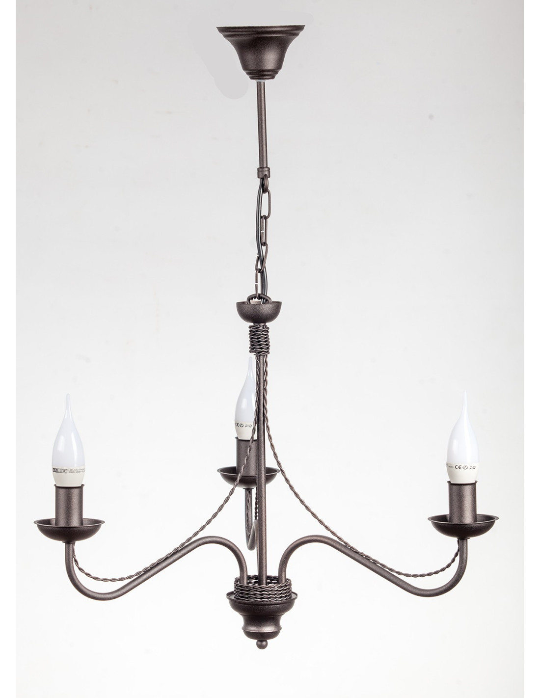 Żyrandol prowansalski Katrin 3-został wyprodukowany przez naszą firmę z myślą o pokojach urządzonych w stylu prowansalskim i retro. Oświetlimy nim pokój średniej wielkości-lampa ta może max świecić 180 W. Ważnym elementem w lampie Katrin są żarówki i ich kształt.Polecamy do tej lampy żarówki w kształcie świeczki z czubem. O żarówki spytajcie naszego sprzedawce.