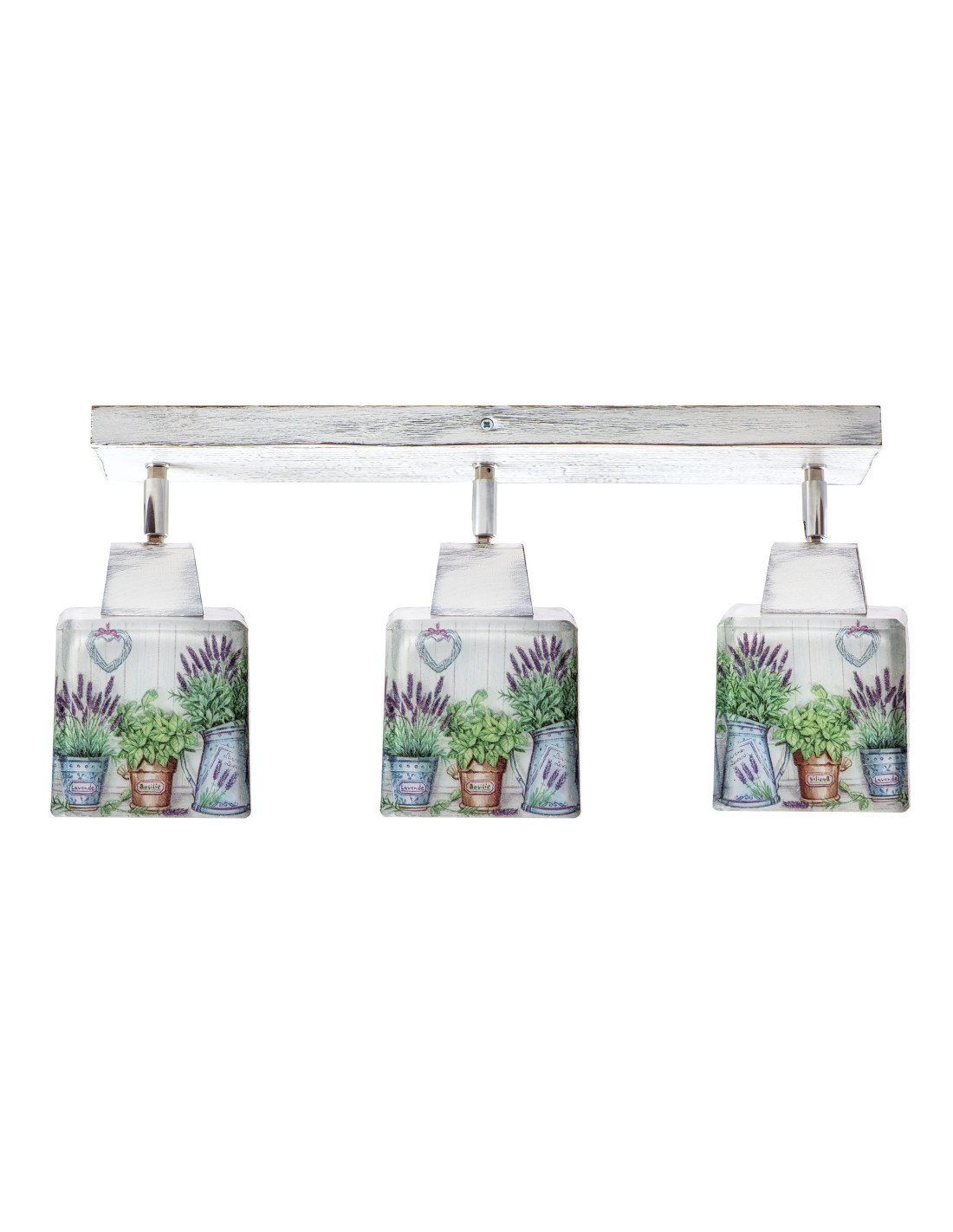 Niesamowity plafon prowansalski, idealny do stylizowanych jak i konwencjonalnych wnętrz. Plafon wykonany ze szczególną dbałością o szczegóły - ręcznie namalowana lawenda na grubych kloszach matowanych od wewnątrz oraz wykończenie z drewna bukowego, które zostało przetarte po pomalowaniu na biało. Dzięki ręcznemu wykonaniu dostają Państwo wyjątkową lampę .