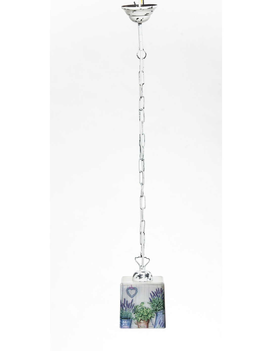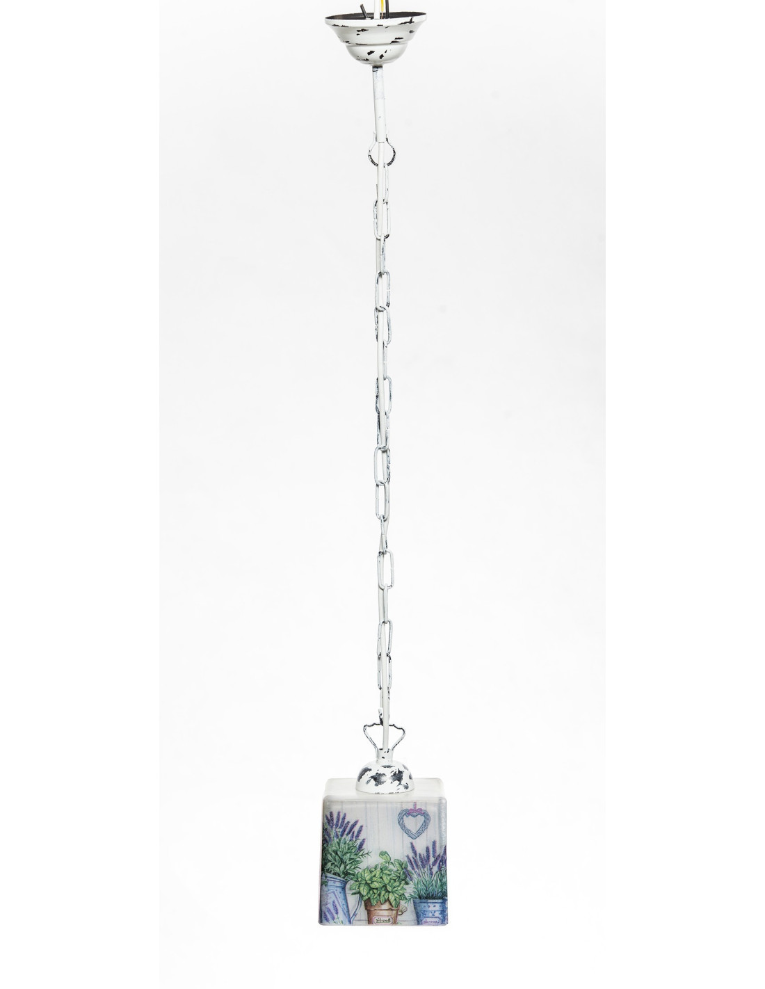 Wyjątkowa lampa prowansalska wisząca na łańcuchu. Dzięki dokładnemu, ręcznemu wykonaniu sprawia, iż nie można przejść obok niej obojętnie. Długi przetarty łańcuch oraz klosz z motywem lawendowym odpowiadają za wyjątkowość tej lampy. Lampa dedykowana klientom lubiącym indywidualizm.