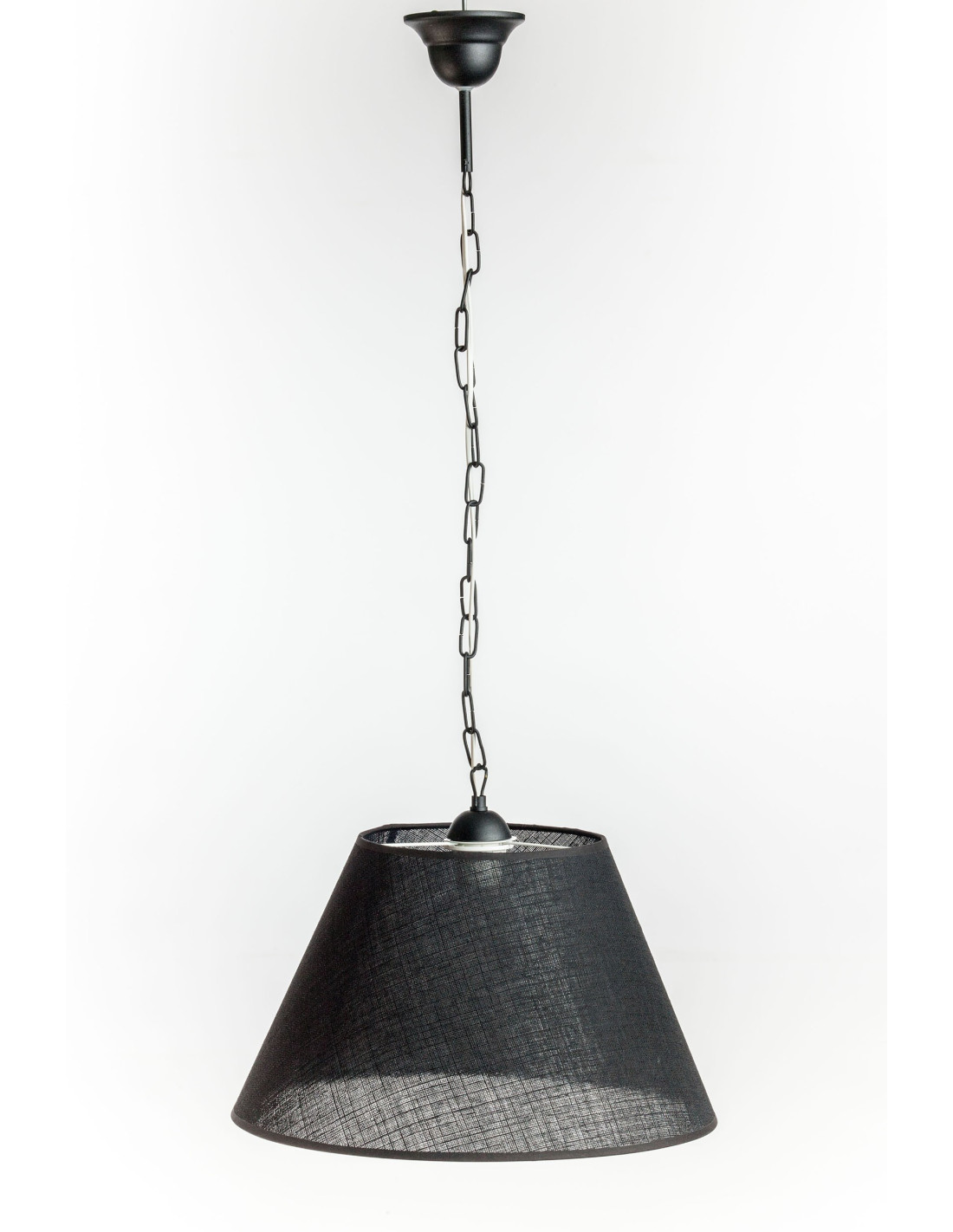 Lampa prowansalska STOŻEK CZARNY- elegancka lampa nawiązująca do klasyki stylu shabby chic , najbardziej eleganckiego designu francuskiego oświetlenia. Klosz z tkaniny w kolorze czarnym, szyty ręcznie. Zawieszony na łańcuchu pomalowanym na czarno. Polecamy do salonu, sypialni lub jadalni w stylu prowansalskim.