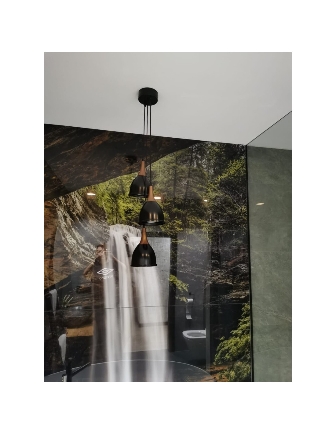 Lampa pająk wisząca z kloszami Monic 3-pająk w kolorze czarno-miedzianym charakteryzuje się niezwykle nowoczesnym kształtem klosza wykonanego z metalu, swoim kształtem przypominającego krople wody.Lampa jest nowoczesna i niepowtarzalna w formie rozpiętego pająka na suficie. Dopełnieniem designu lampy jest kabel w bawełnianym szarym oplocie. Lampa ta stanowić będzie idealne uzupełnienie nowoczesnych aranżacji. Lampa ręcznie robiona - poszukujesz innych kolorów - napisz do nas!