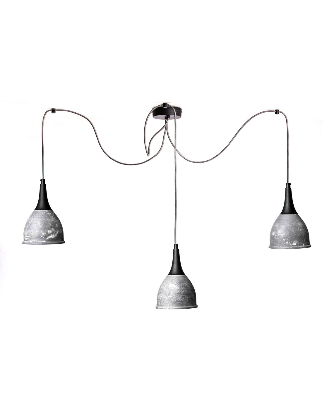 Lampa wisząca pająk Monic 3-pająk beton charakteryzuje się niezwykle nowoczesnym kształtem klosza wykonanego z metalu,pokrytego warstwą betonu, swoim kształtem przypominającego krople wody. Lampa jest nowoczesna i niepowtarzalna w formie rozpiętego pająka na suficie. Dopełnieniem designu lampy jest kabel w bawełnianym szarym oplocie. Lampa ta stanowić będzie idealne uzupełnienie nowoczesnych aranżacji. Lampa ręcznie robiona - poszukujesz innych kolorów - napisz do nas!
