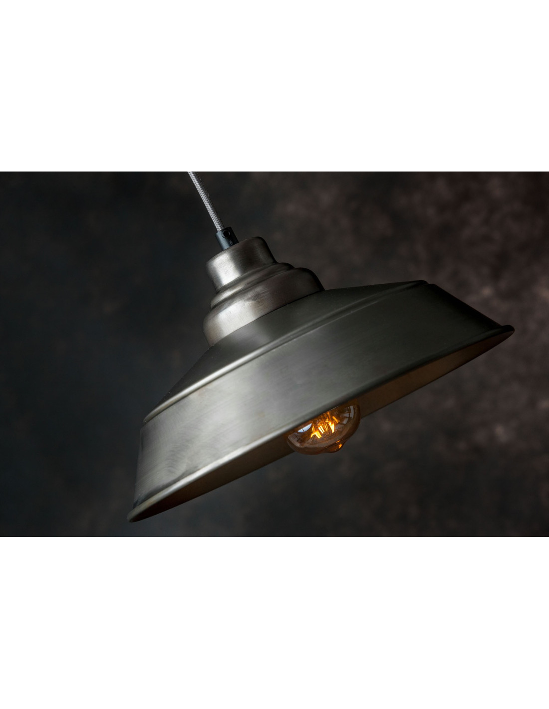 Lampa industrialno-loftowa TB/SPS/TGD wykonana jest w całości ze stali.Klosz i podsufitka zostały połączone kablem w szarym bawełnianym oplocie.Stal została poddana ręcznemu procesowi szczotkowania i polerowania a następnie została zabezpieczona proszkowo lakierem.Stal surowa – może posiadać ślady rdzy.Regulacja wysokości na kablu góra/dół.Oprawka schowana w podkloszówce na duży gwint.By uzyskać efekt taki jak widzimy,blacha została poddana ręcznemu wyoblaniu.