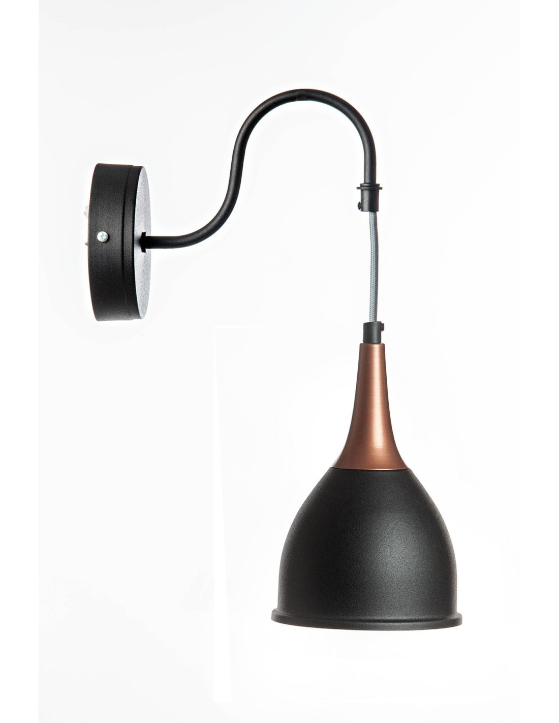 KINKIET MONIC 1 CZARNO MIEDZIANY - unikatowa bryła w kształcie kropli wody,unikatowa regulacja wysokości(możemy podwyższać i obniżać klosz za pomocą kabla i blokady). Uzupełnieniem bryły jest kabel w szarym bawełnianym oplocie.Świetne połączenie kolorów miedzi gładkiej z czarną strukturą i niespotykany design nada każdemu wnętrzu charakteru.