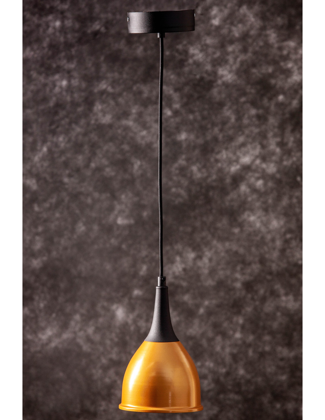 Lampa Monic 1-pkt.w kolorze złoto-czarnym charakteryzuje się niezwykle nowoczesnym kształtem klosza wykonanego z metalu, swoim kształtem przypominającego krople wody.Lampa jest nowoczesna i niepowtarzalna. Dopełnieniem designu lampy jest kabel w bawełnianym czarnym oplocie. Lampa ta stanowić będzie idealne uzupełnienie nowoczesnych aranżacji.