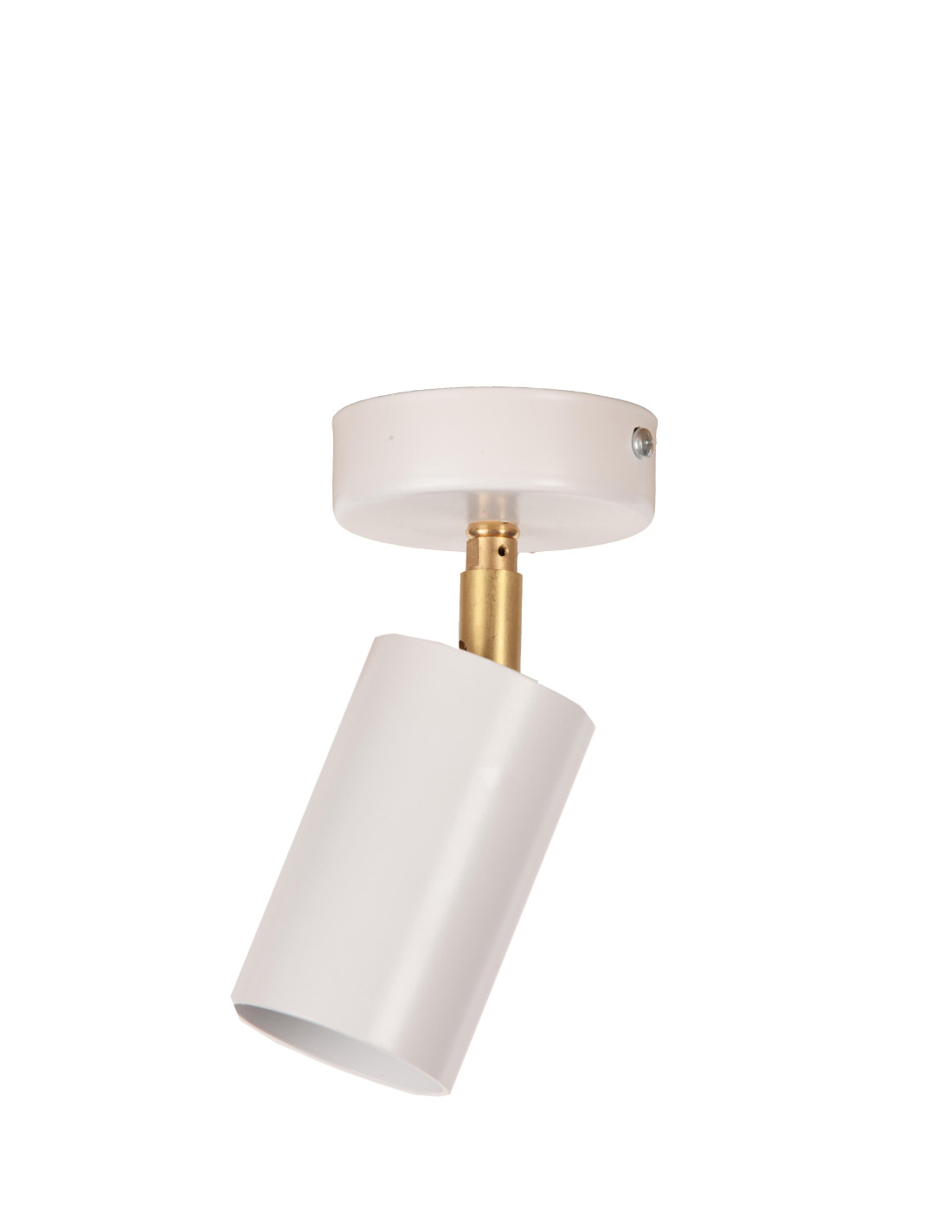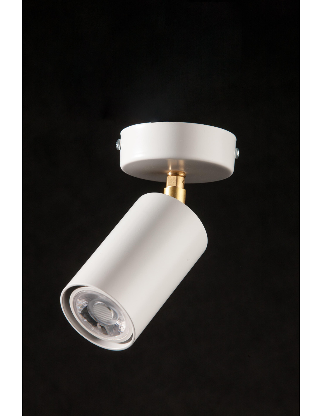 SPECTRA plafon -może mieć zastosowanie jako oświetlenie punktowe górne czy boczne. Reflektor stalowy w kształcie walca pomalowano na kolor białej struktury i wykończono przegubem z mosiądzu. Reflektor możemy łamać pod różnymi kontami i obracać 350 stopni. Lampa ta na pewno lepiej sprawdzi się w pomieszczeniach niż tradycyjne oczka halogenowe ,nie mówiąc już o estetyce odbioru.