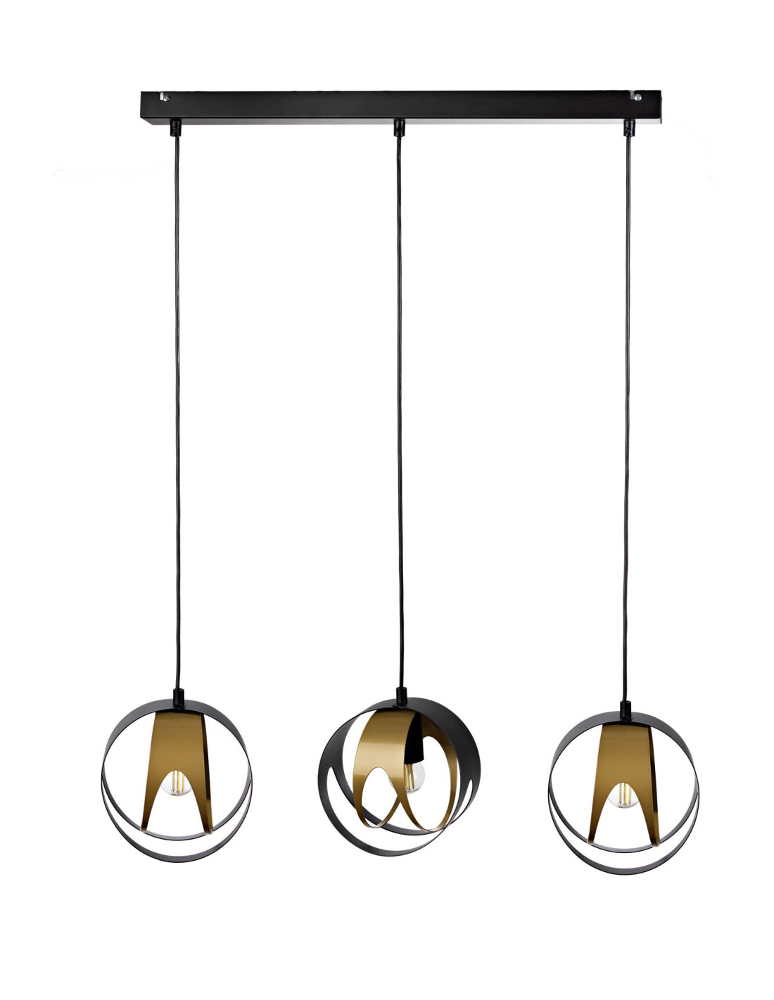 SELENA 3L.w kolorze czarnej drobnej struktury/złoty, należy do grupy designerskich lamp wiszących pomagających w spójnym zespoleniu ze sobą poszczególnych elementów obecnych w pomieszczeniu. To rodzaj oświetlenia, który najczęściej pełni funkcję głównego źródła światła.Forma, kształt lampy odpowiada za wypełnienie przestrzeni dostępnej między sufitem a linią wzroku. Nic nie stoi na przeszkodzie, aby kształt lampy wiszącej nieco zdominował pomieszczenie,nadając mu autorskiego zacięcia.