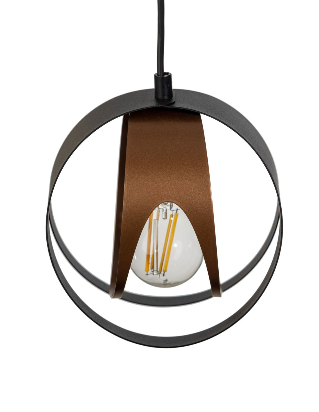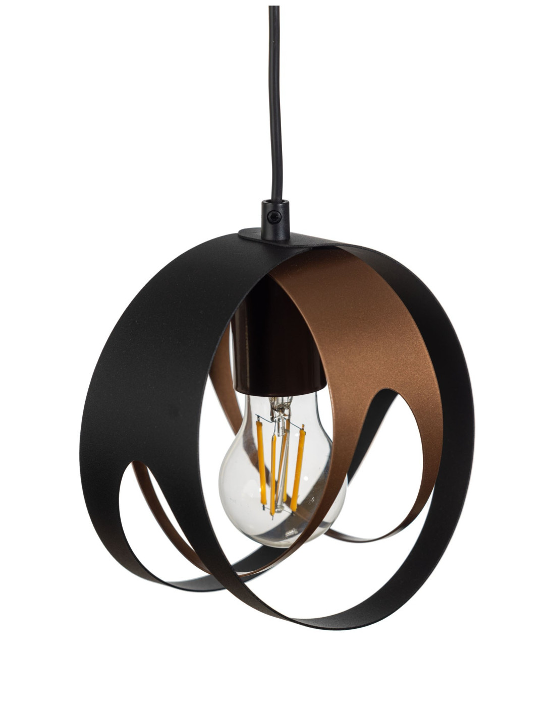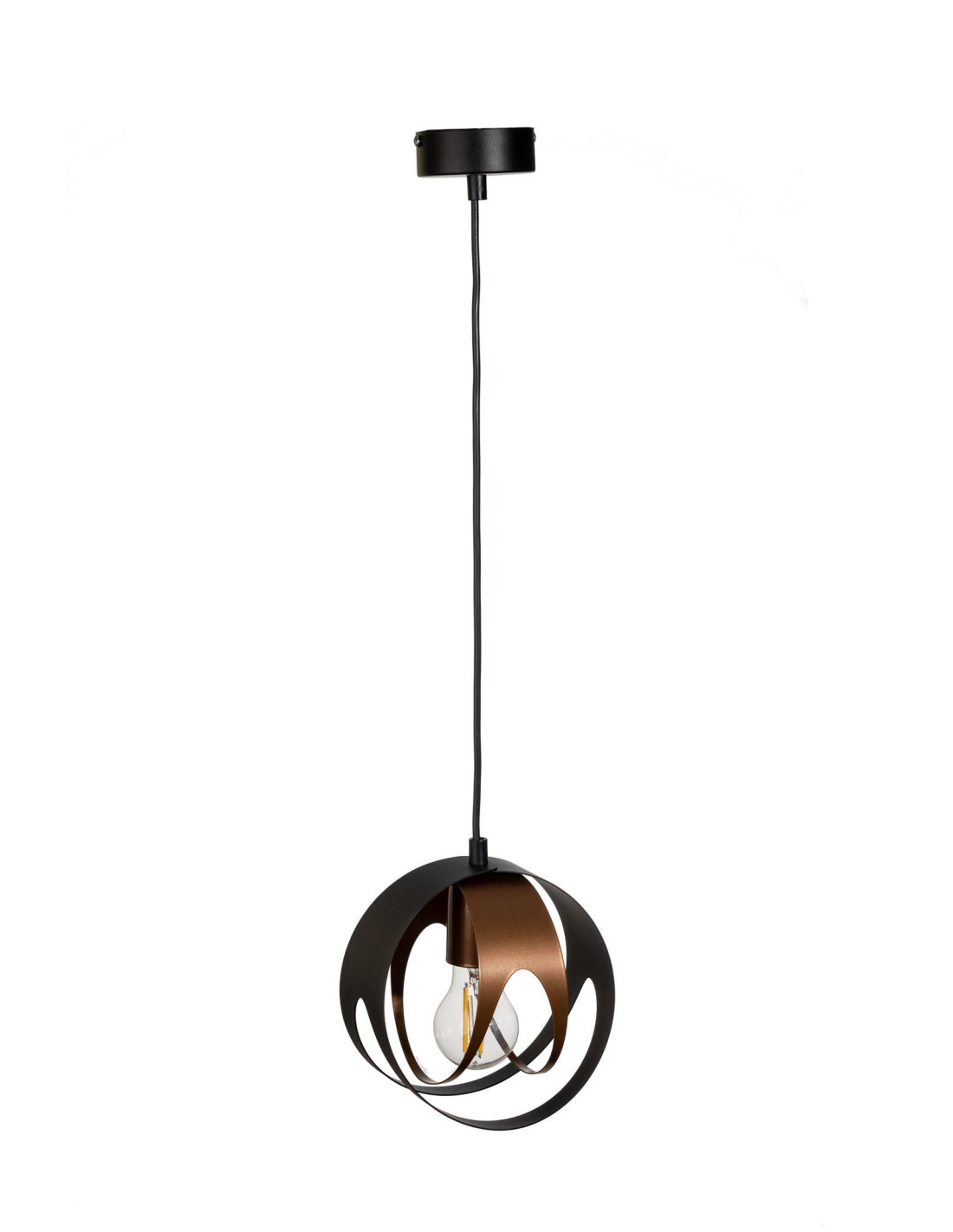 SELENA 1L.w kolorze czarnej drobnej struktury/miedź, należy do grupy designerskich lamp wiszących pomagających w spójnym zespoleniu ze sobą poszczególnych elementów obecnych w pomieszczeniu. To rodzaj oświetlenia, który najczęściej pełni funkcję głównego źródła światła.Forma, kształt lampy odpowiada za wypełnienie przestrzeni dostępnej między sufitem a linią wzroku. Nic nie stoi na przeszkodzie, aby kształt lampy wiszącej nieco zdominował pomieszczenie,nadając mu autorskiego zacięcia.
