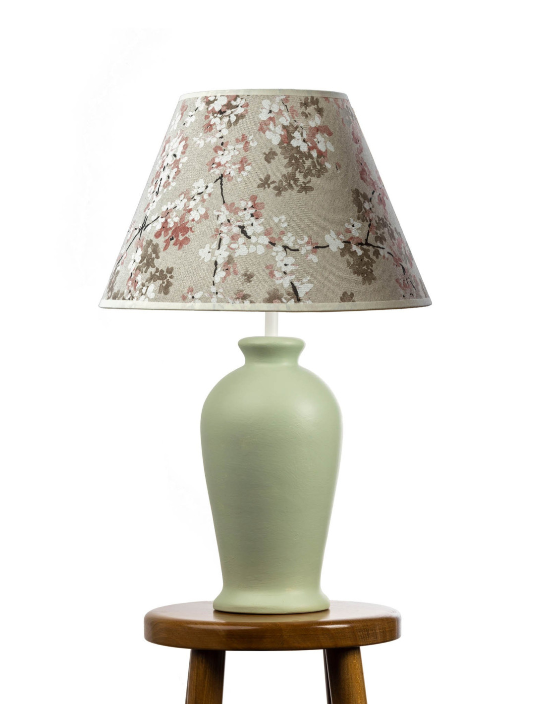 Lampa Ceramiczna ERIS w kolorze mięty z abażurem z tkaniny, ręcznie przeszytym i podklejonym PCV z motywem wiśni na gałązce, wykończonym lamówką w tym samym kolorze. Idealna zarówno do nowoczesnych i klasycznych wnętrz ,lampa też świetnie wpisze się w nurt pomieszczeń w stylu prowansalskim. Nasze lampy stołowe są wykonane z najwyższej jakości glinki ceramicznej.