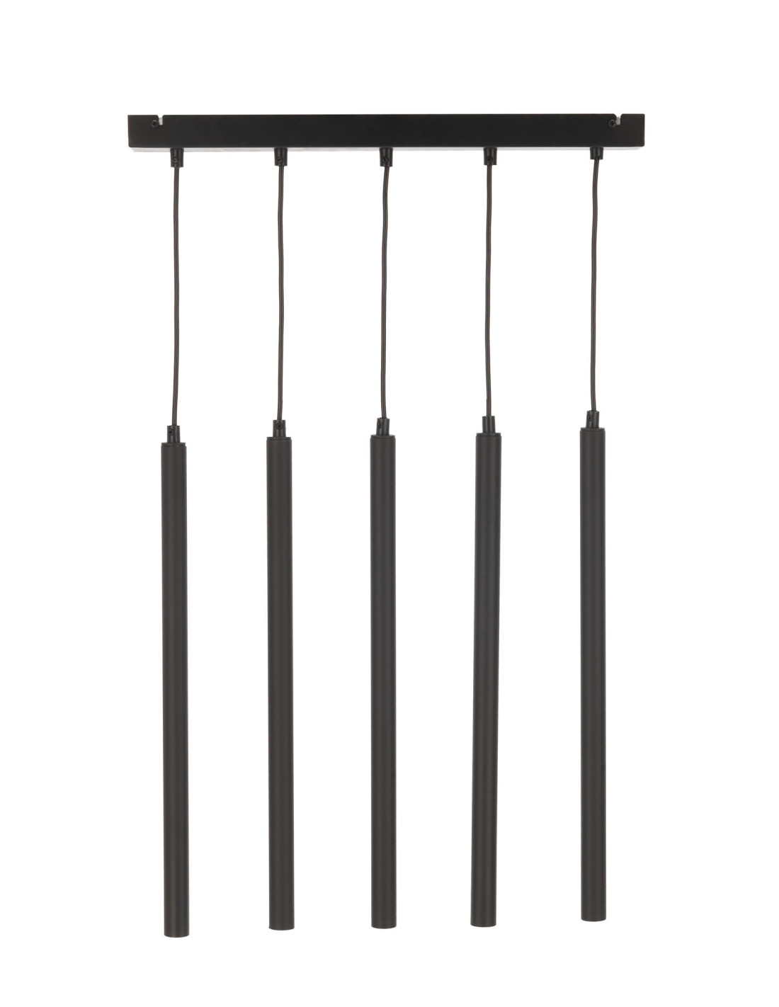 Lampa wisząca Flou 5L w kolorze czarnej drobnej struktury, jest lampą minimalistyczną ,zaliczaną do lamp dekoracyjnych, stanowi świetne uzupełnienie pomieszczań typu salon, łazienka, klatka schodowa.Rury czarne,możemy ustawiać na dowolnej wysokości,tworząc wzory np. w kształcie liter V lub ustawić je po skosie.