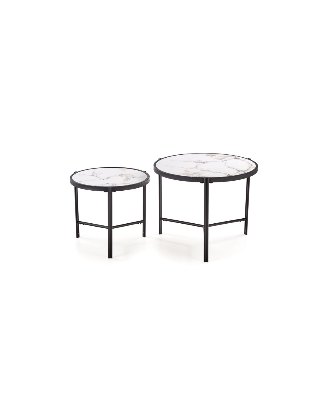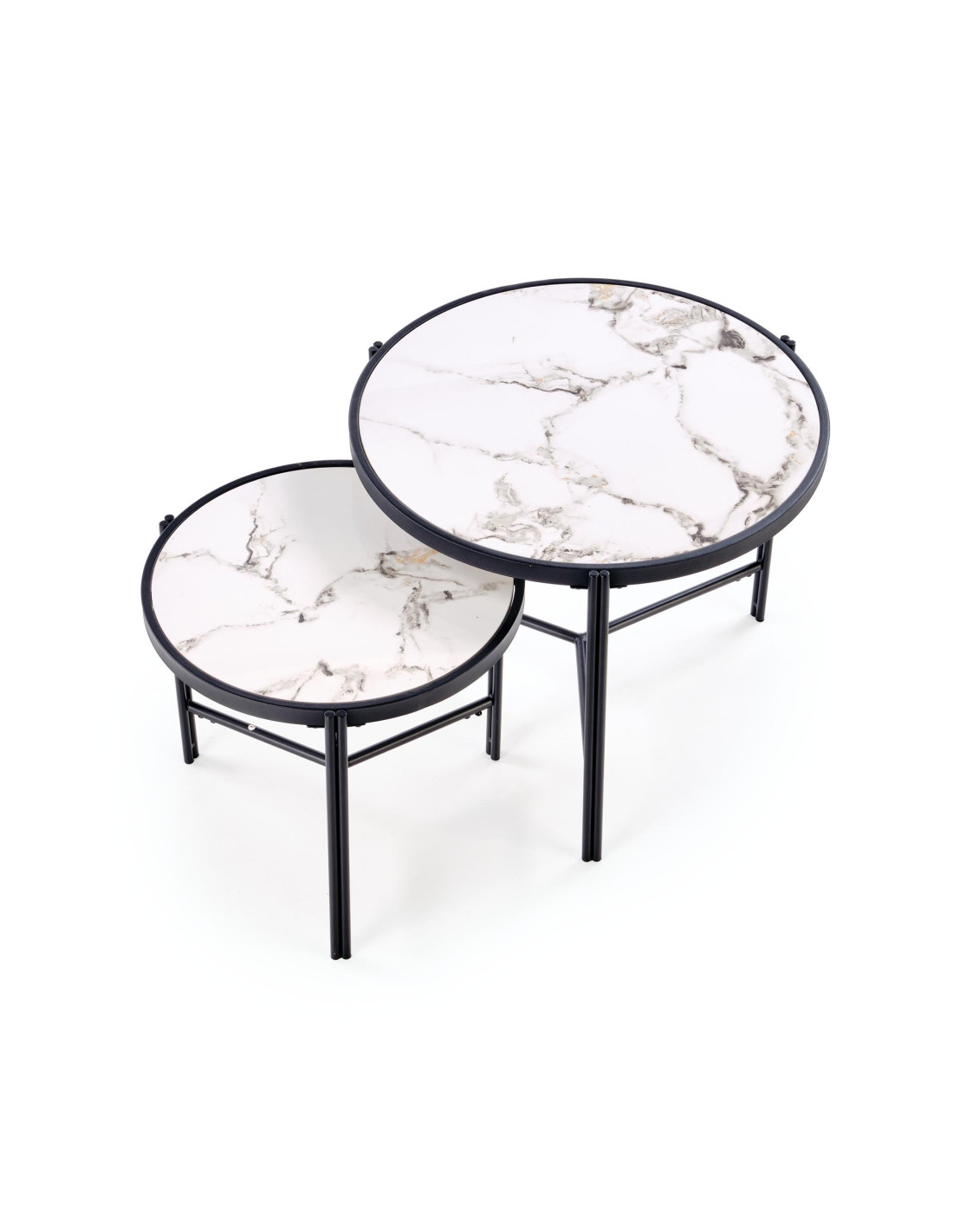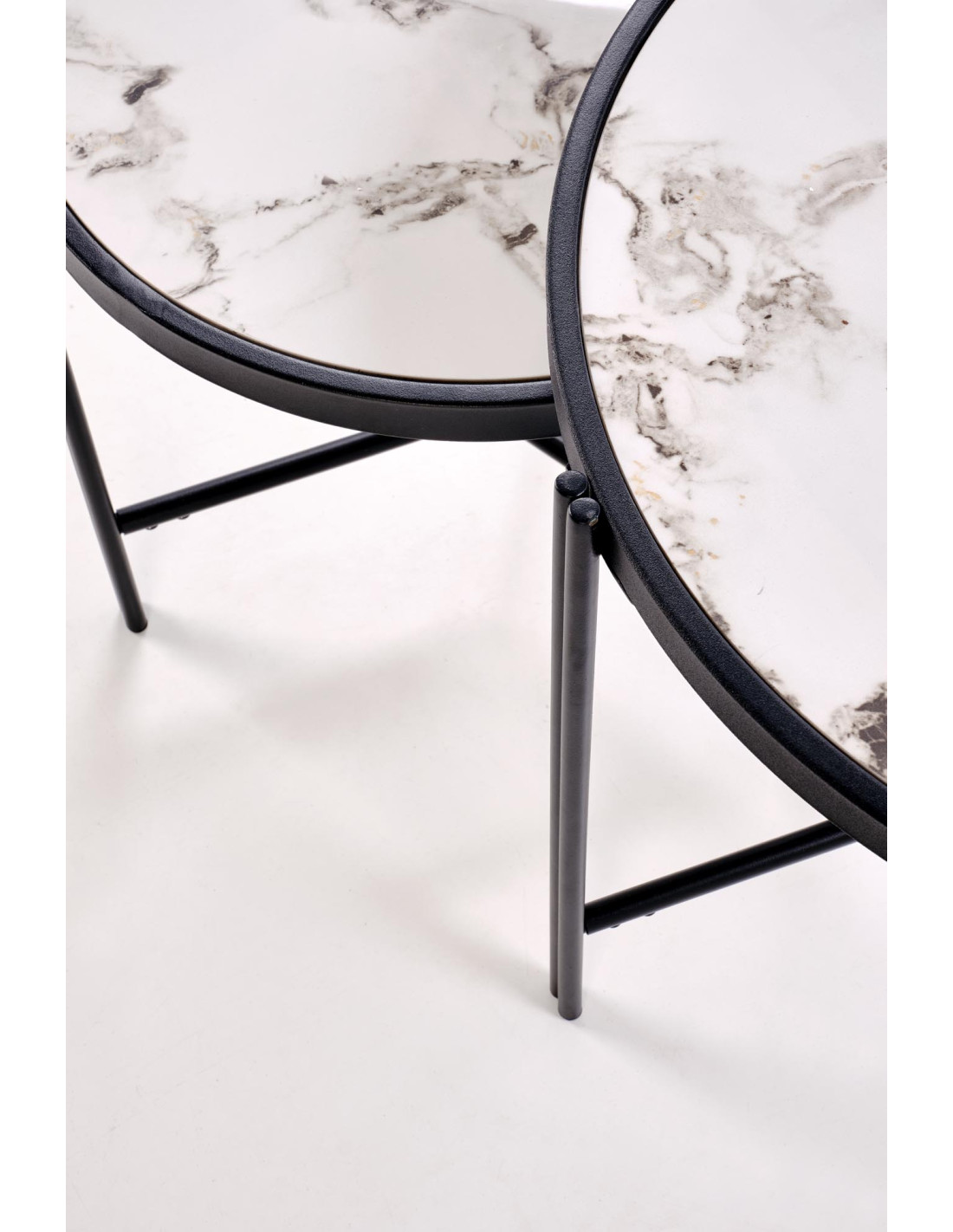 FATIMA zestaw 2 ław biały marmur stal proszkowa 63x50 i 48x43 cm