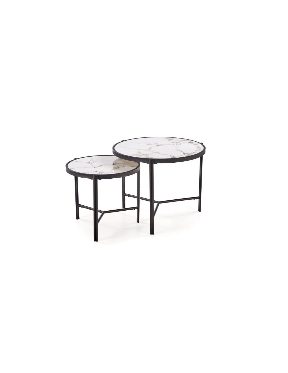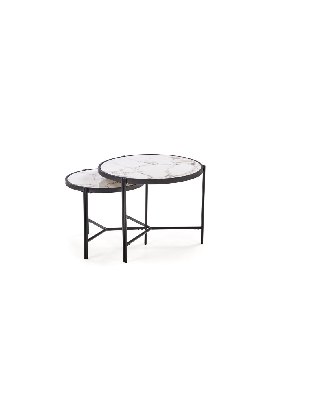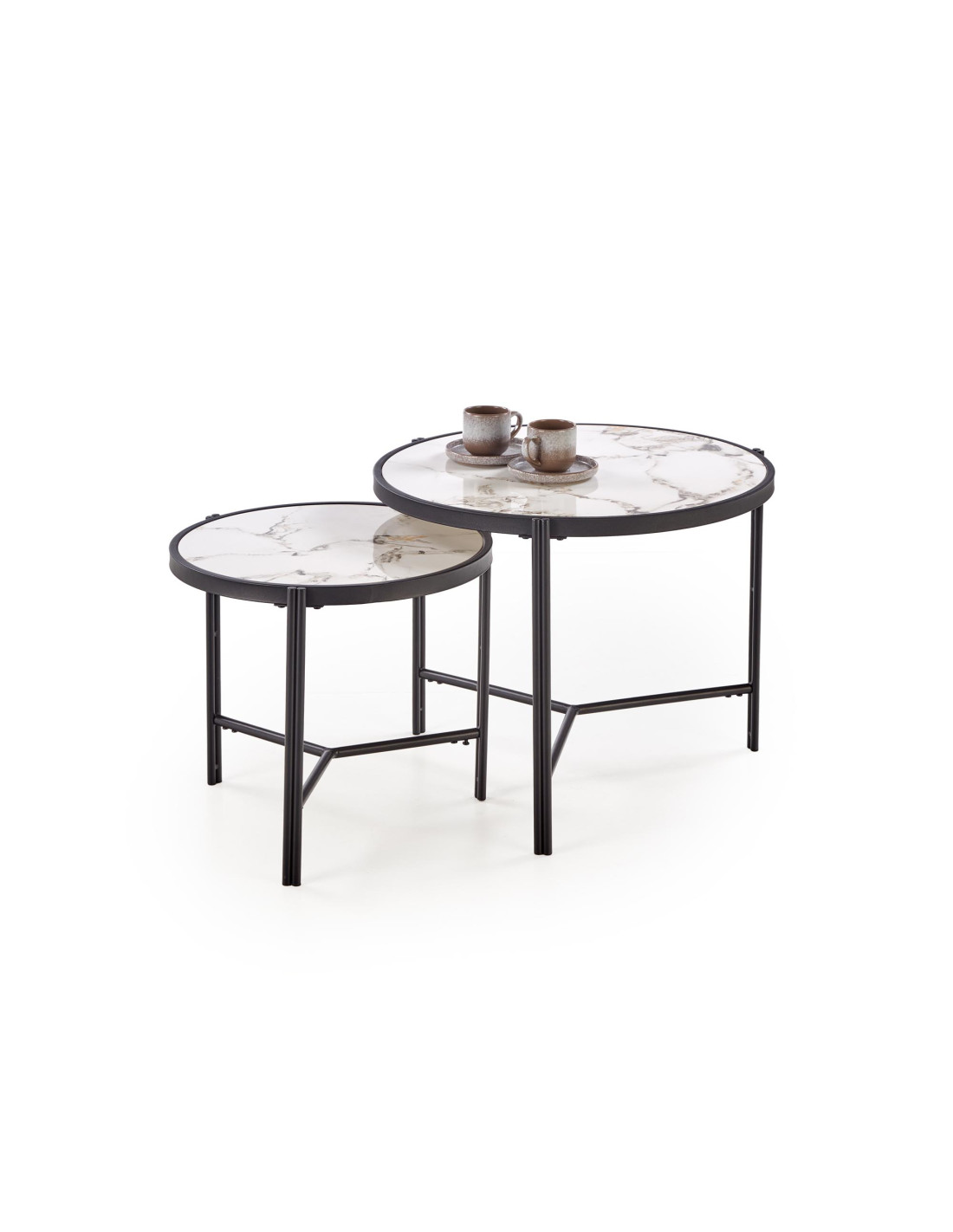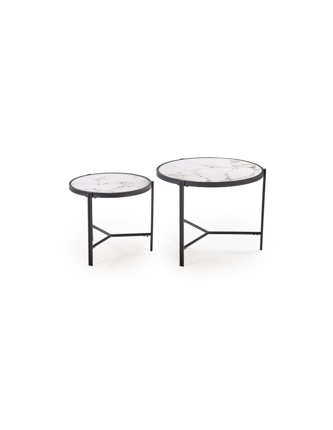 FATIMA zestaw 2 ław biały marmur stal proszkowa 63x50 i 48x43 cm