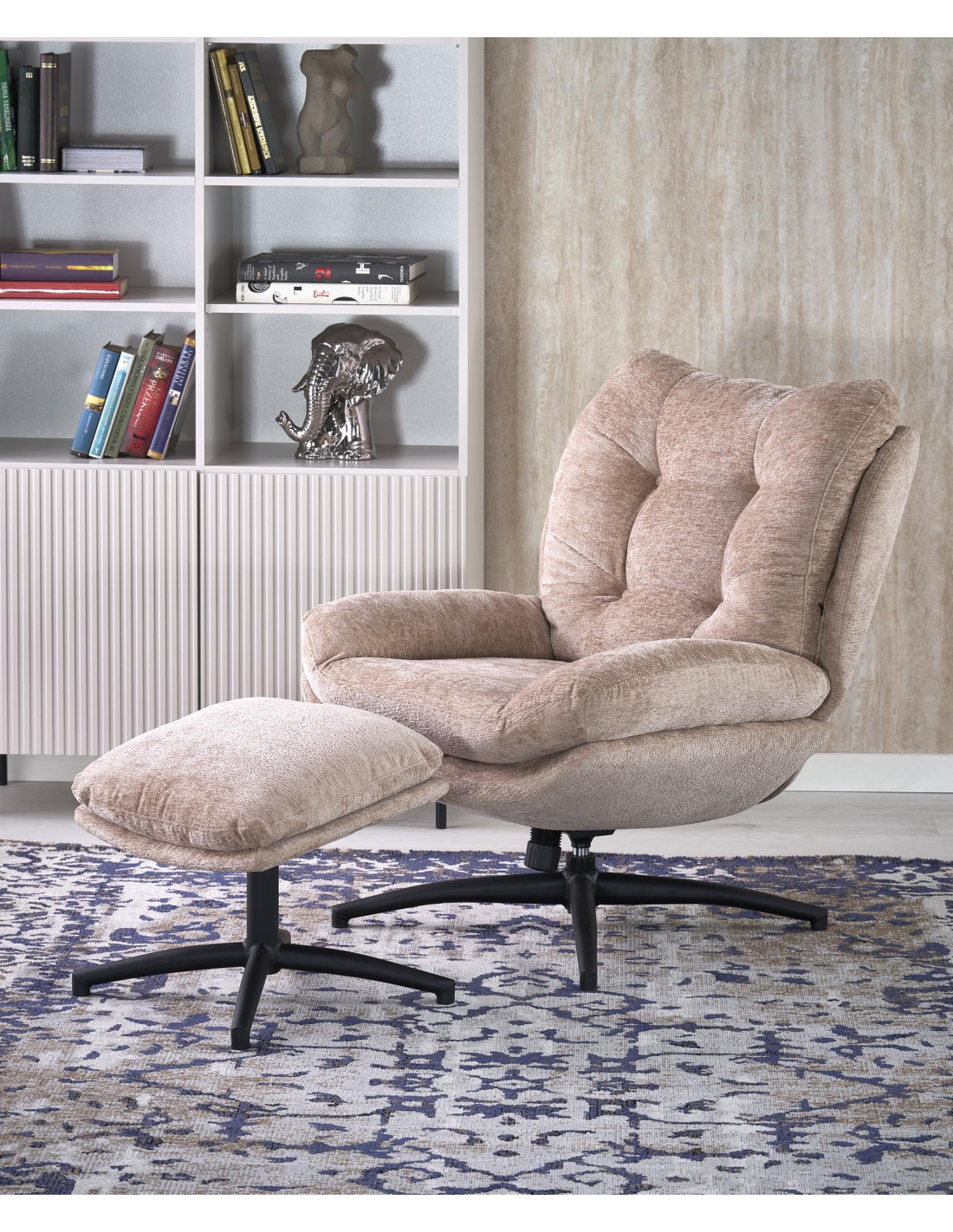 PESTO fotel z podnóżkiem beżowy tkanina kołyska 76x96x92 cm relaksacyjny do salonu
