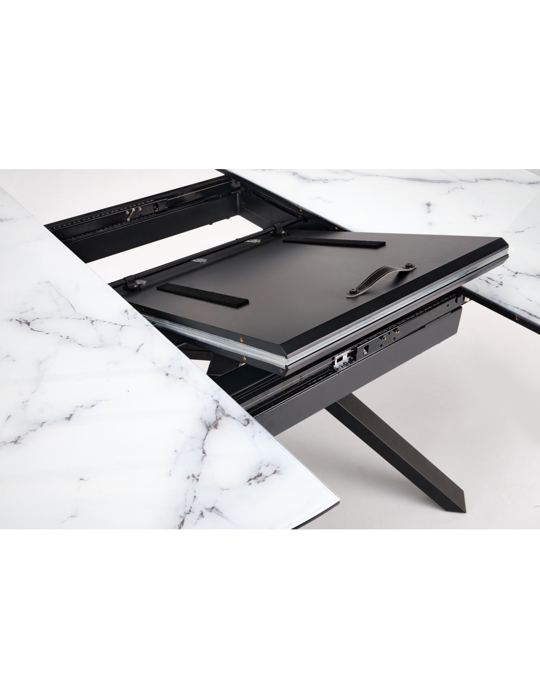 VERTIGO stół rozkładany, blat - biały marmur, nogi - czarny (2p 1szt)