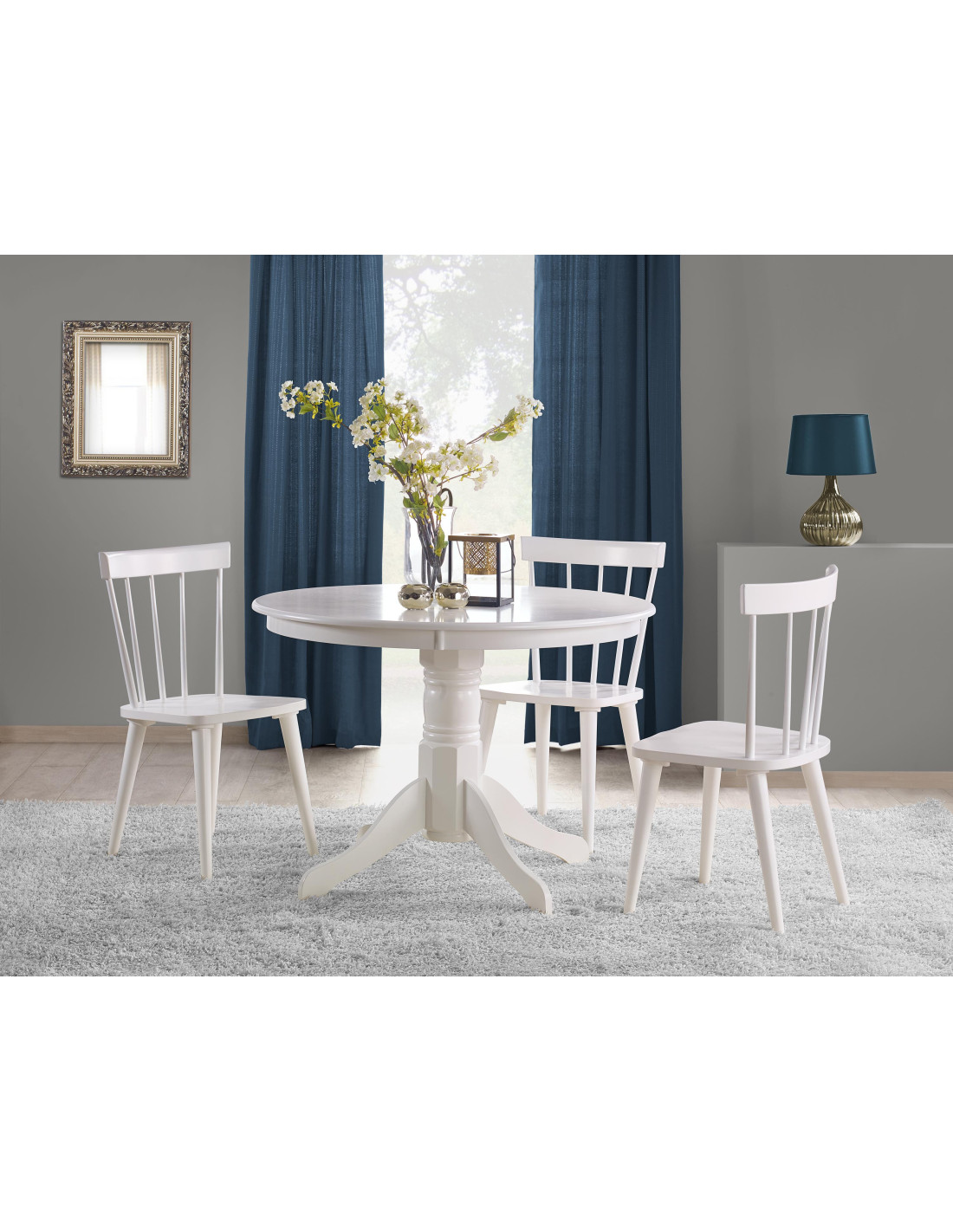 Podkreśl elegancję swojej przestrzeni z okrągłym stołem GLOSTER, który łączy prosty, elegancki design z wysoką funkcjonalnością. Jego biały lakierowany blat z MDF oraz nogi z litego drewna kauczukowego tworzą harmonijną całość, która doskonale wpisuje się w nowoczesne oraz klasyczne aranżacje.