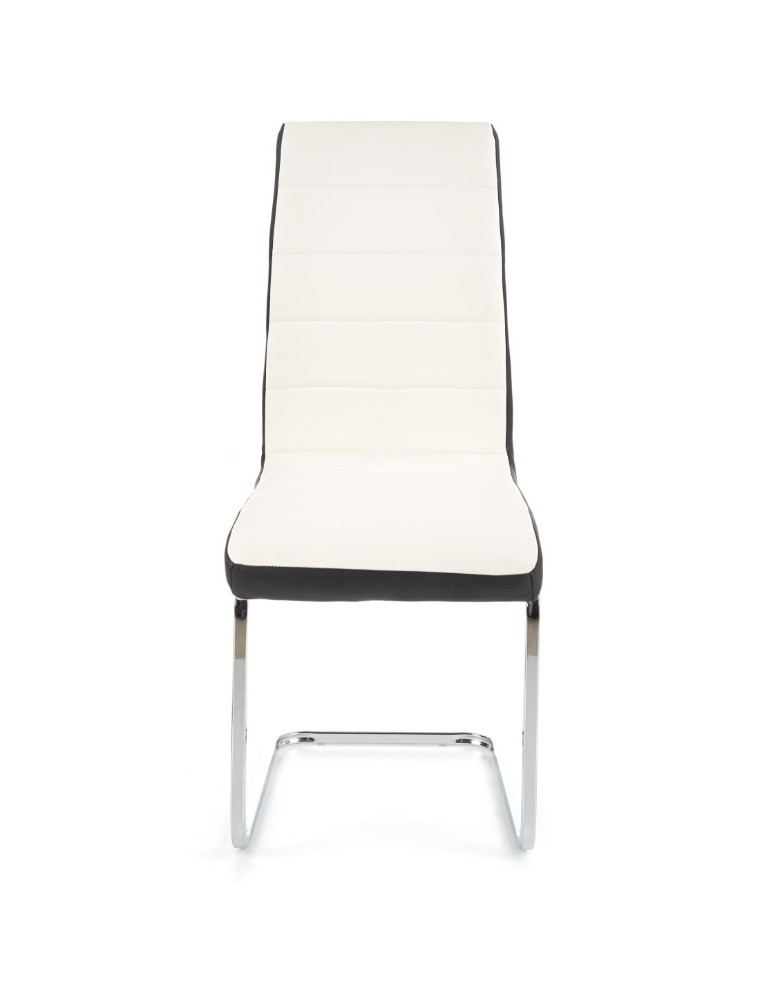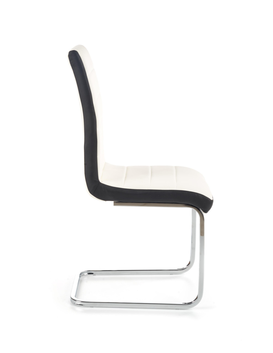 Podkreśl elegancję swojego wnętrza z krzesłem K132, które harmonijnie łączy nowoczesny design z funkcjonalnością. To wyjątkowe krzesło wykonane z eco-skóry w kolorze biało-czarnym przyciąga wzrok swoim unikalnym wyglądem i chromowaną podstawą w kształcie litery "C". Oparcie oraz siedzisko są starannie wyprofilowane, a pionowe przeszycia dodają mu stylowego charakteru. Usiądź wygodnie i ciesz się komfortem, który to krzesło może Ci zaoferować.